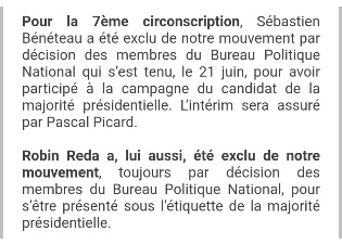Information reprise et publiée par la presse le dimanche 19 juin 2022, jour de l’élection, à 6 heures du matin !!!
