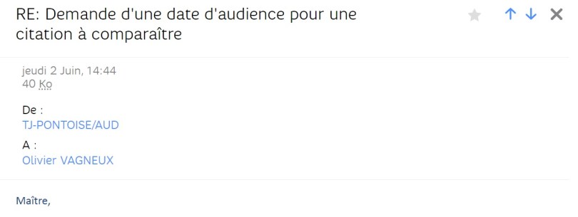 Eux aussi, le TJ de Pontoise, me prennent pour un avocat ; mort de rire.