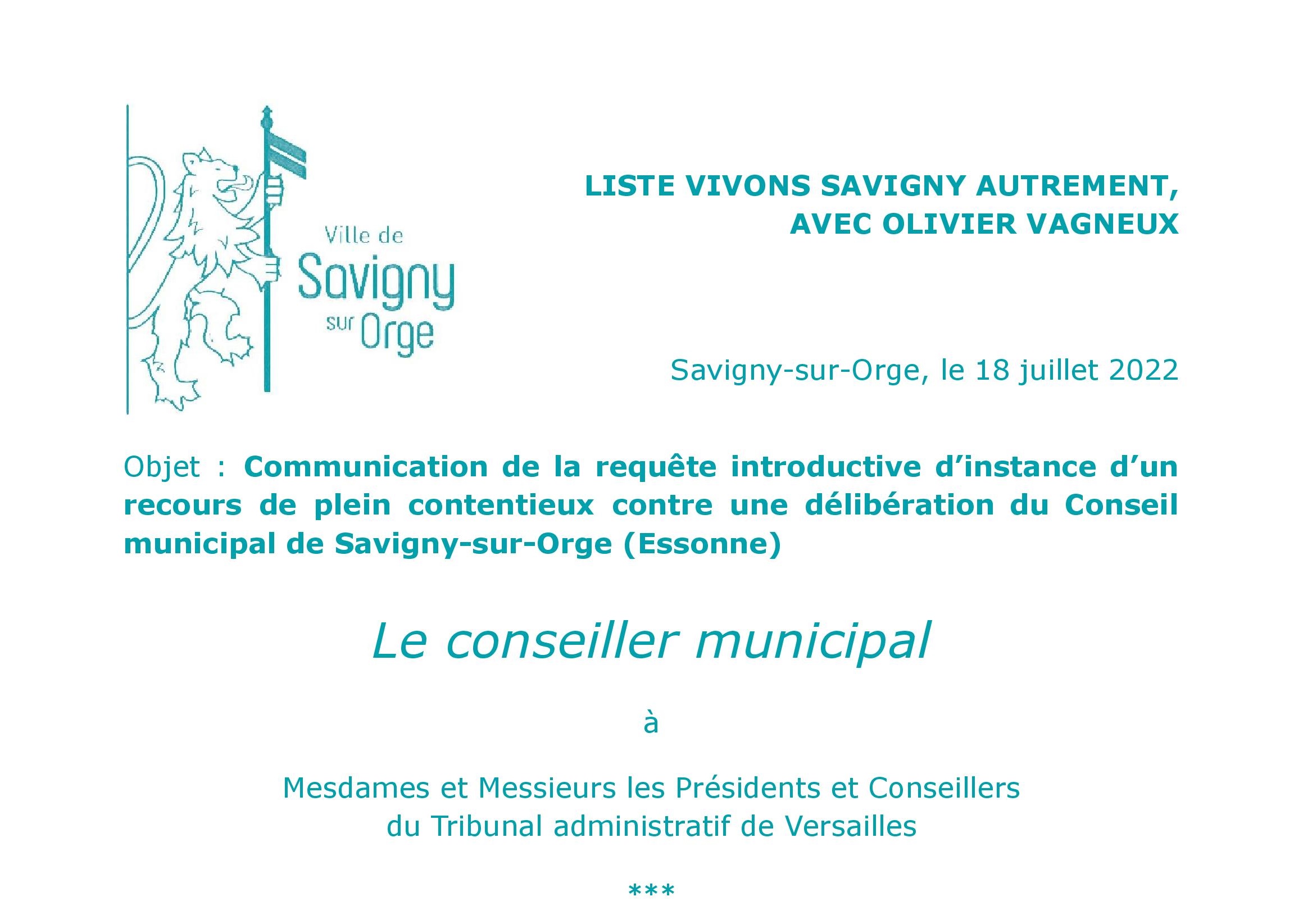 - Monsieur Olivier VAGNEUX, agissant en qualité de conseiller municipal de la Commune de Savigny-sur-Orge, demeurant sis 75, rue du Bicentenaire de la Révolution française – 91600 Savigny-sur-Orge, domicilié en cette qualité en l’Hôtel-de-Ville, sis 48, avenue Charles-de-Gaulle – BP 123 – 91605 Savigny-sur-Orge cedex