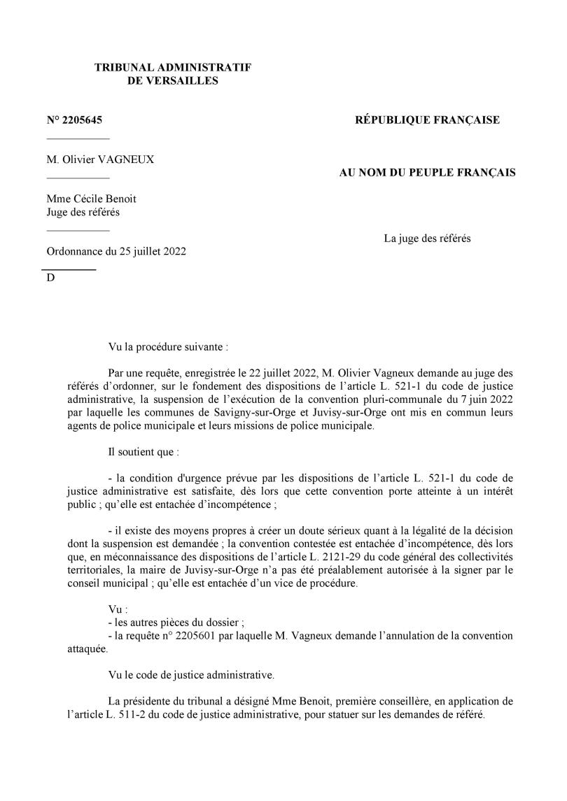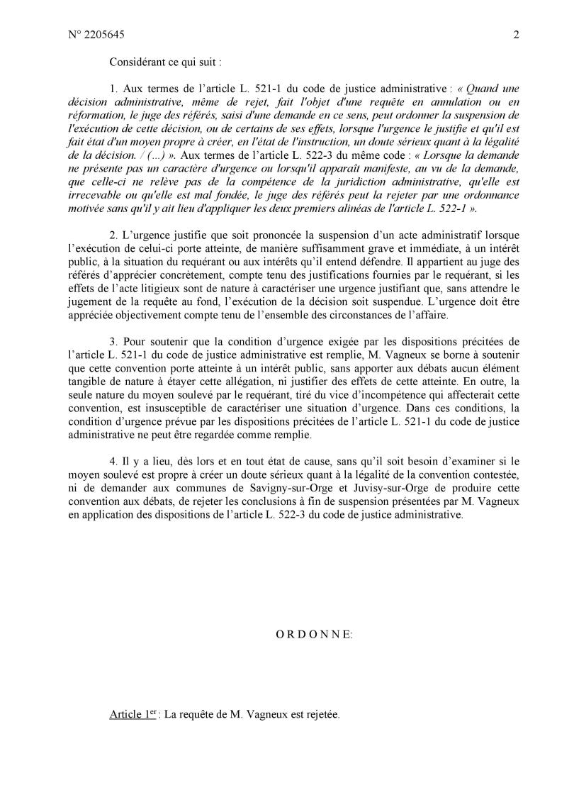 Je déférerai dans la semaine prochaine par la voie du recours en validité de la convention le même texte passé entre Savigny et Viry, pour lequel je développerai cette fois des arguments de légalité interne.