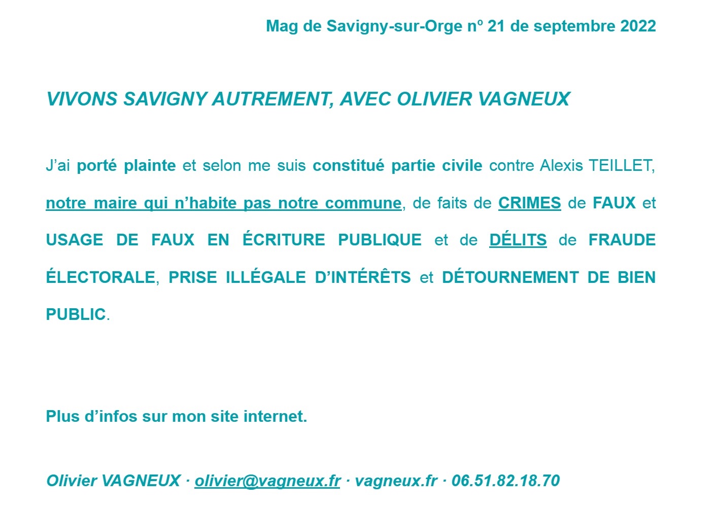 Et aussi dans laquelle je dévoile à tout Savigny les quatre plaintes que j’ai déposées contre lui !