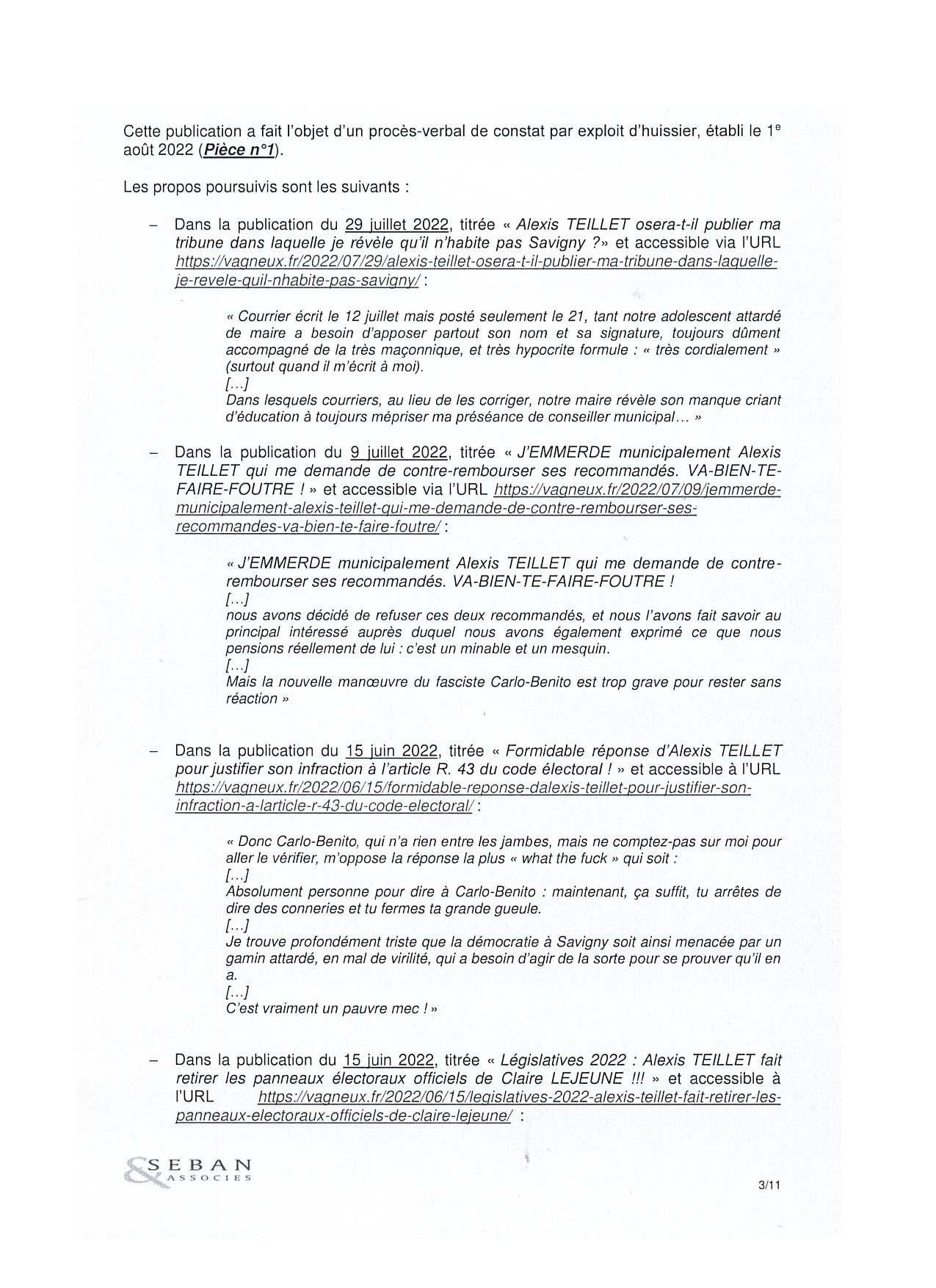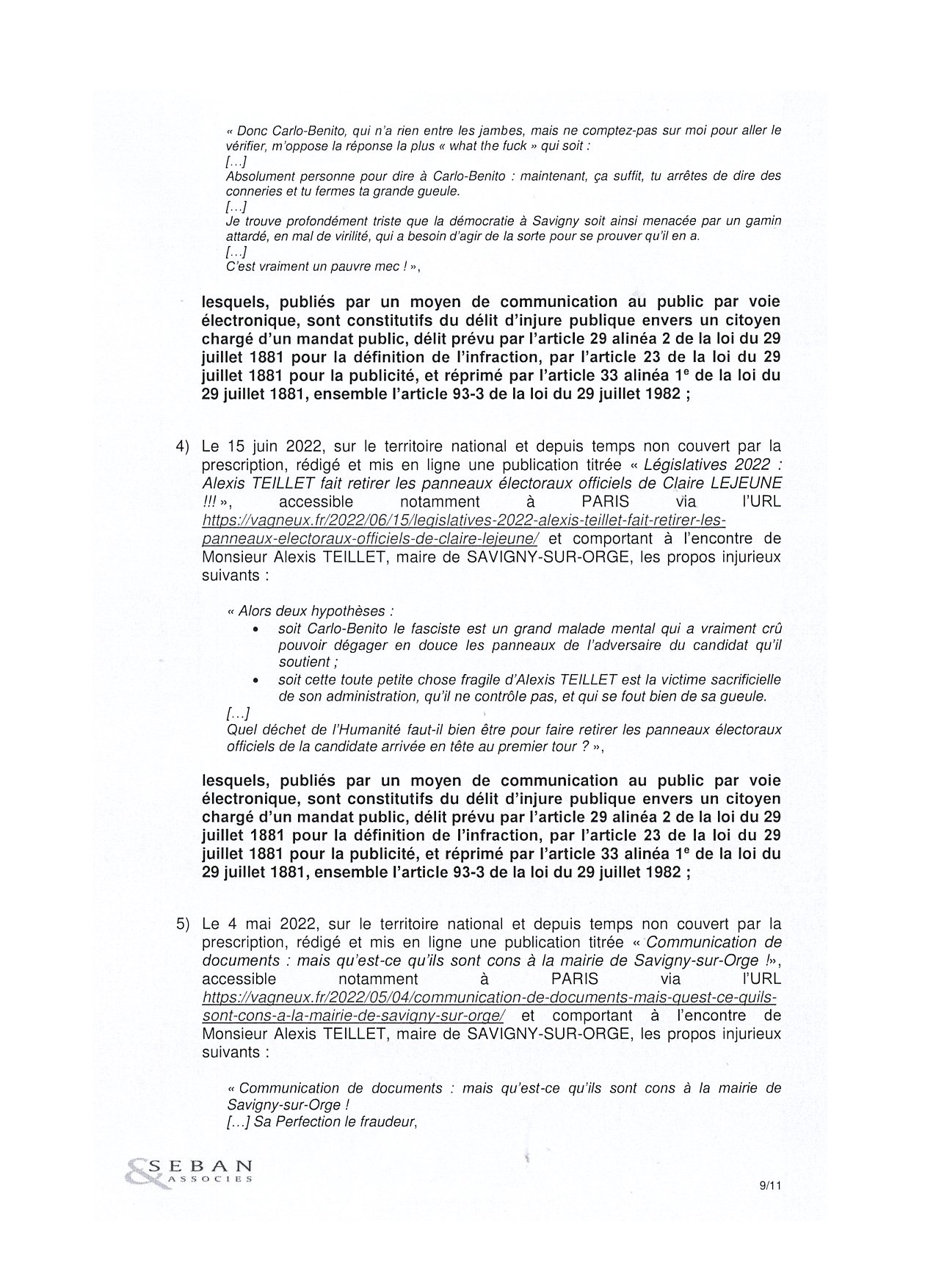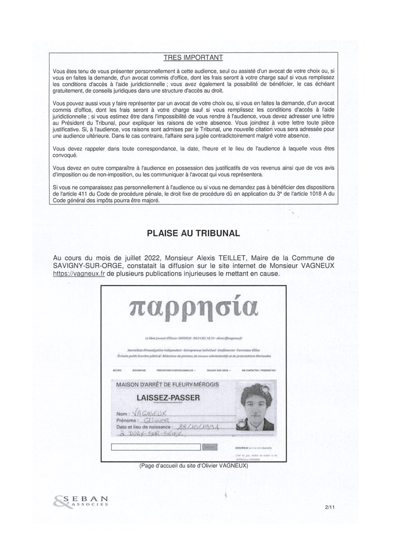Mais au fait, cher Alexis, pourquoi me citer devant le Tribunal de Paris ? N’es-tu pas le maire de Savigny ? Ne pouvais-tu pas me citer à Évry ? Serait-ce donc que tu habites… À Paris ?