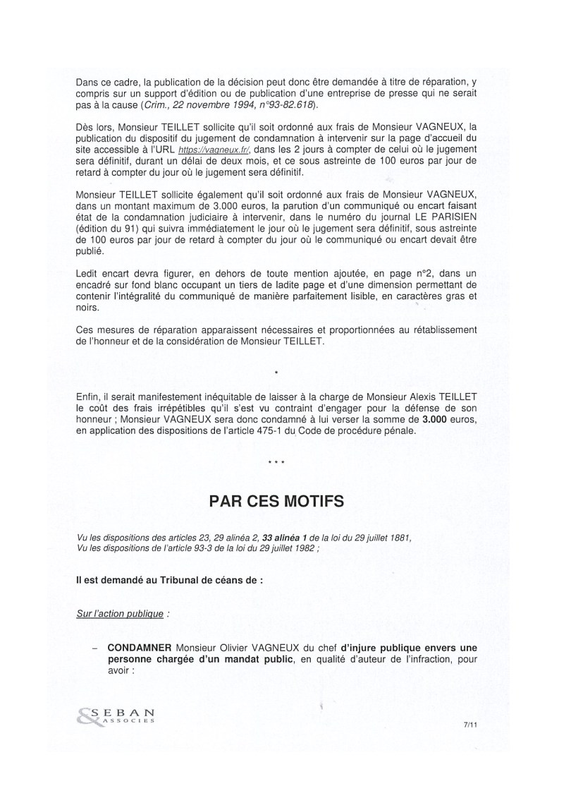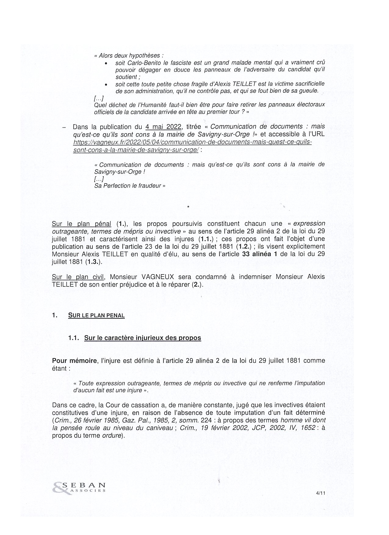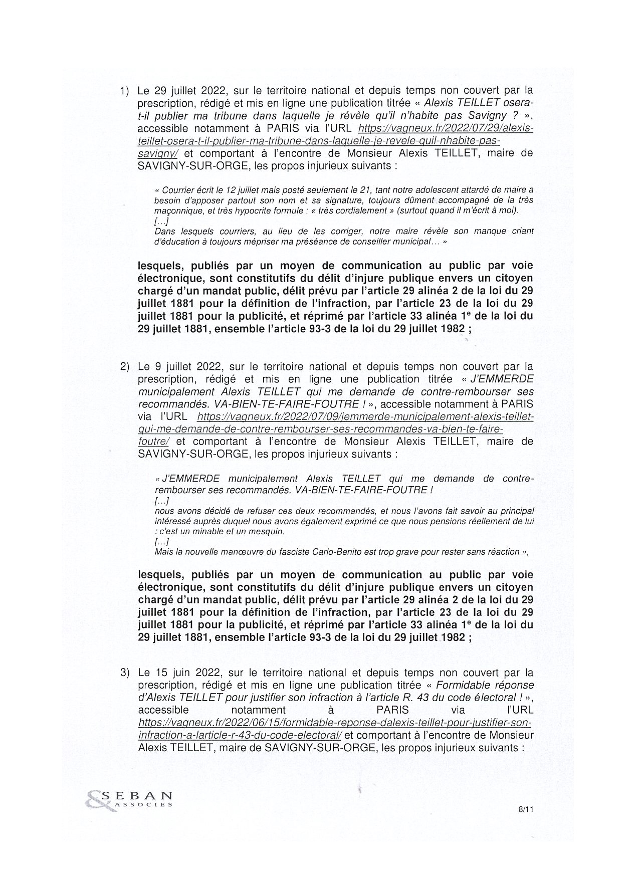 Mais au fait, cher Alexis, pourquoi me citer devant le Tribunal de Paris ? N’es-tu pas le maire de Savigny ? Ne pouvais-tu pas me citer à Évry ? Serait-ce donc que tu habites… À Paris ?