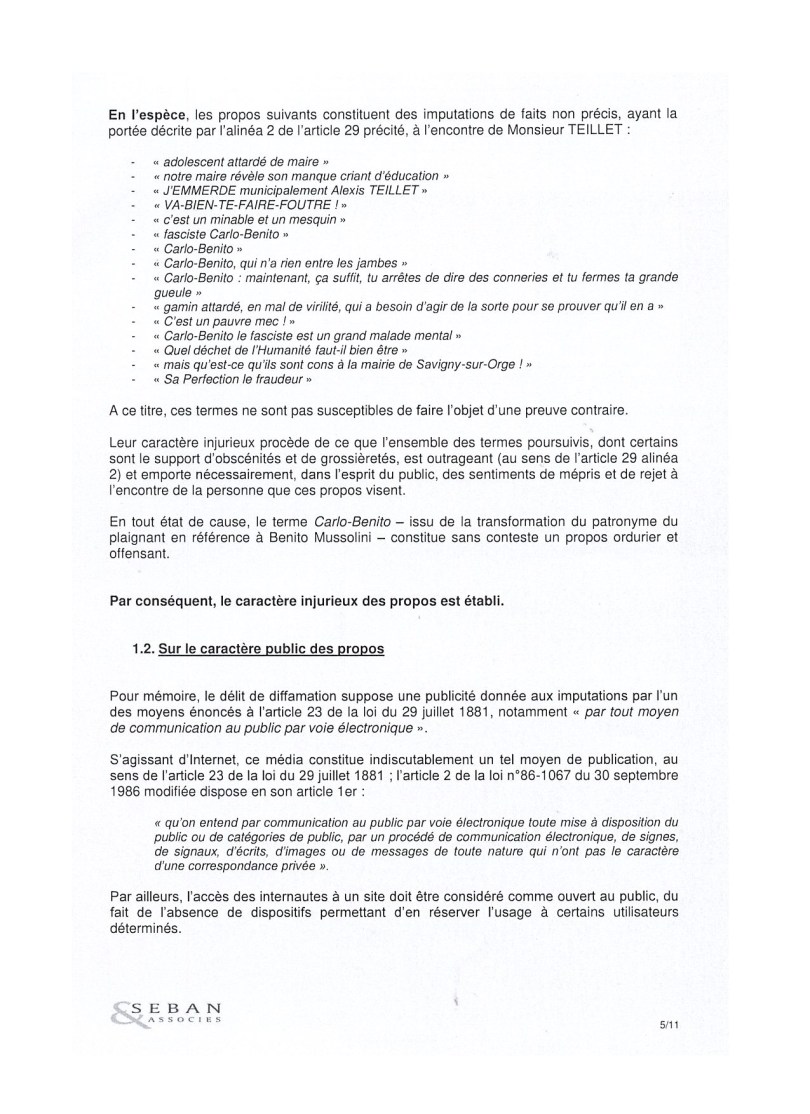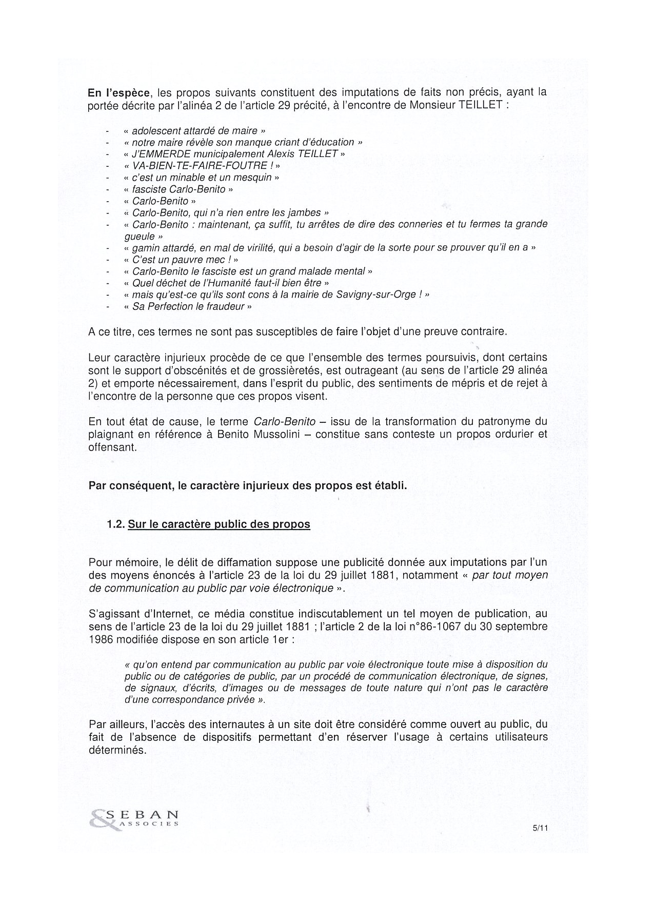 Citation à comparaître donc, pour des faits injures publiques portés dans 5 articles.