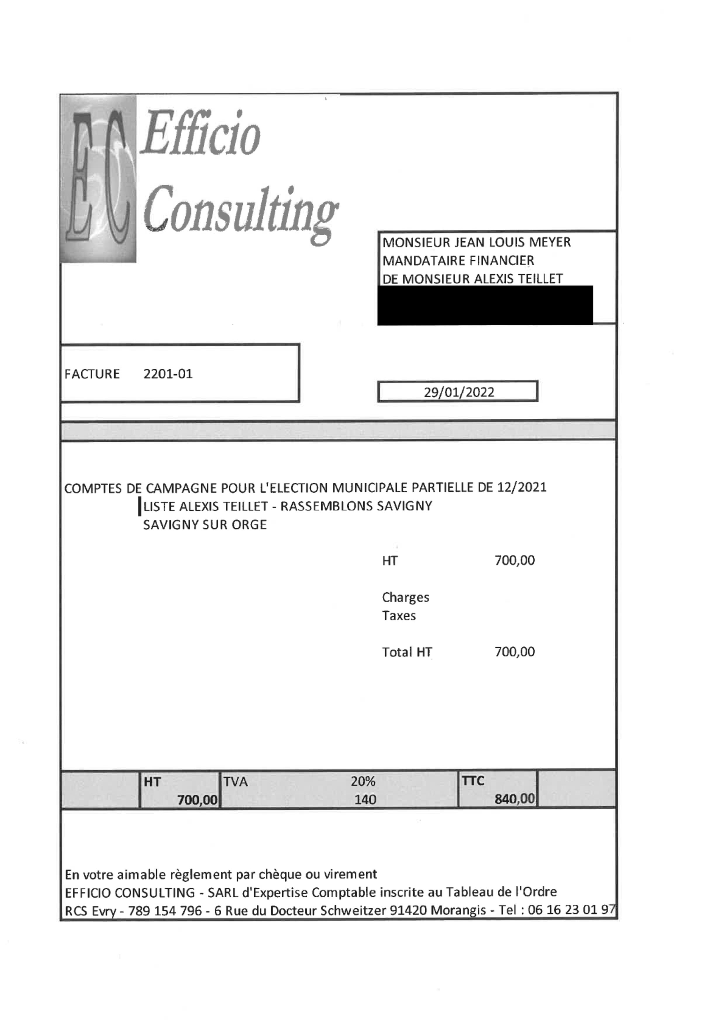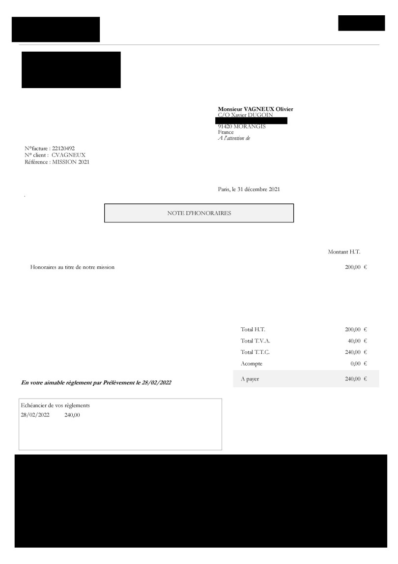La facture de l’expert-comptable d’Olivier VAGNEUX