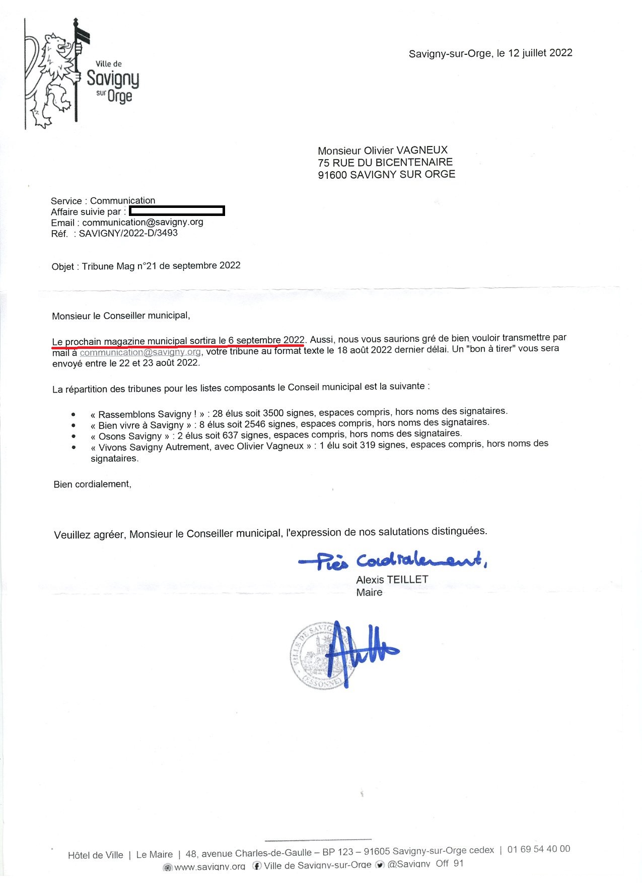 Ainsi donc, pour que le magazine, déjà imprimé, soit dans les mains du distributeur dès le 30 août au matin, c’est bien que notre magouilleur de maire ne comptait pas sur un quelconque retour de ma part !