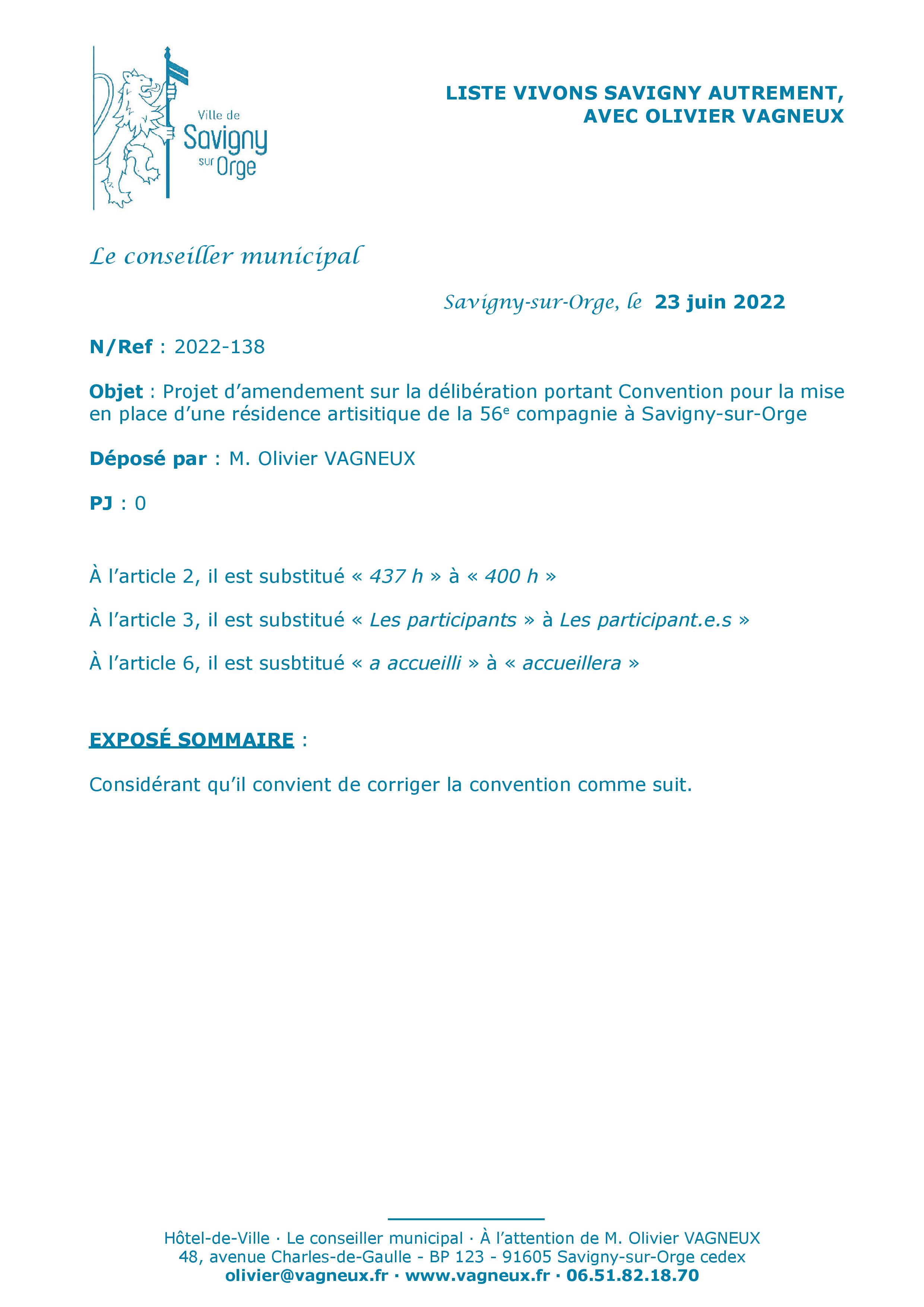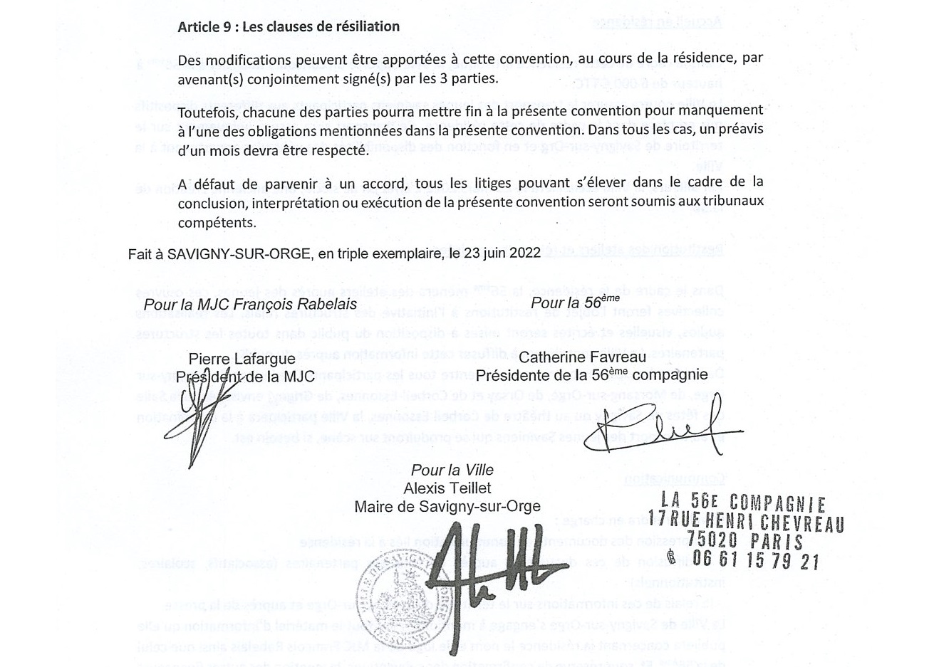 Qui concernerait cette fois la convention pour la mise en place d’une résidence artistique de la 56eme compagnie à Savigny-sur-Orge, après la convention de mutualisation des agents et des missions des polices municipales de Savigny et de Juvisy, voire aussi celle pour les polices de Savigny et de Viry…