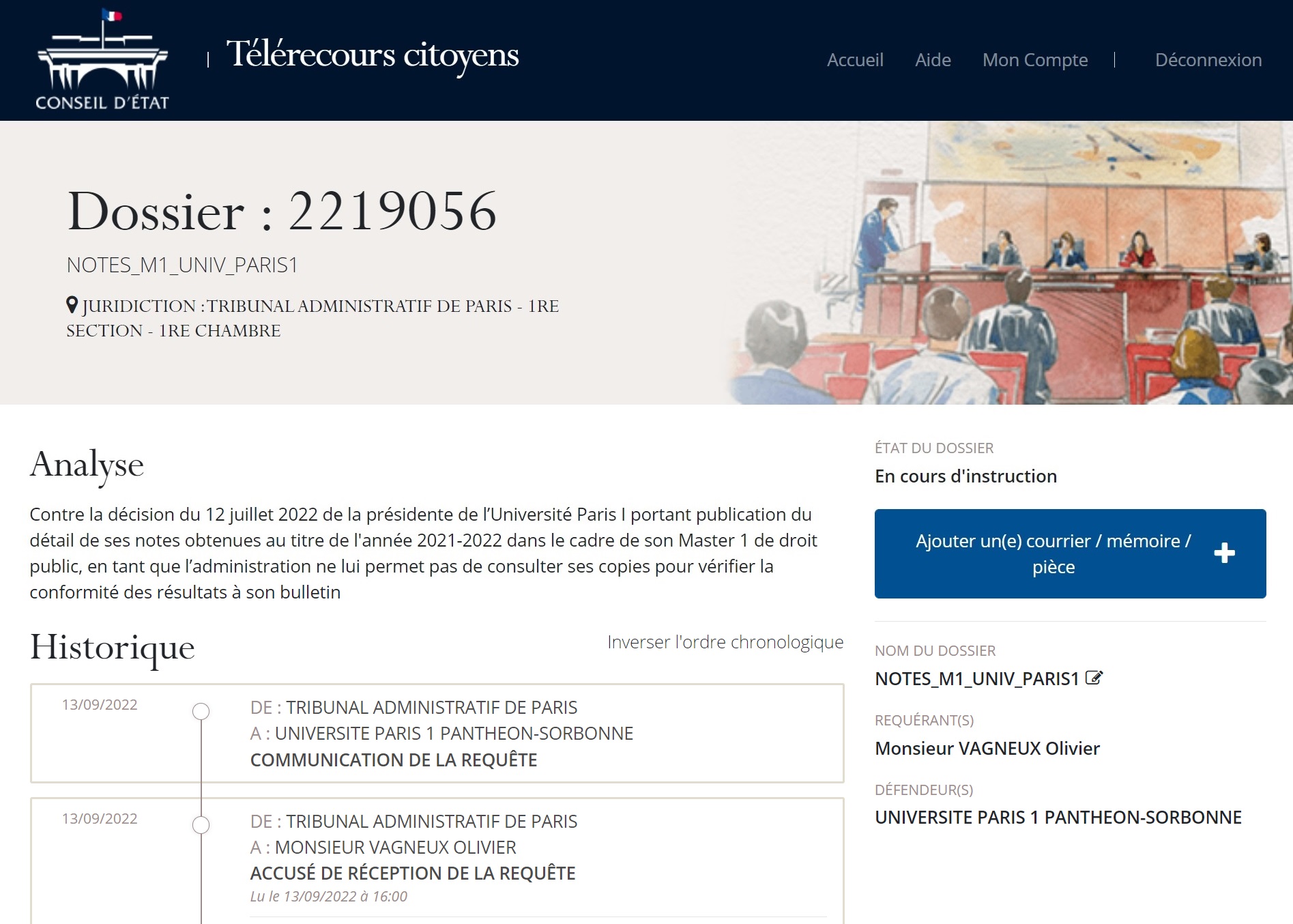 Acte II : Je dépose une requête au Tribunal administratif, qui est communiquée à l’Université.