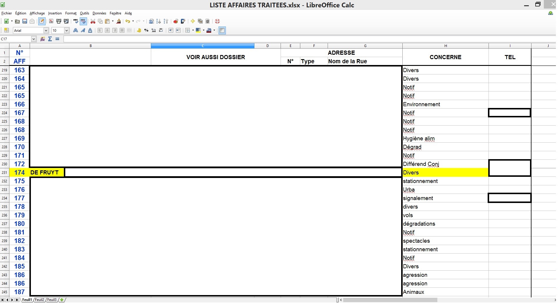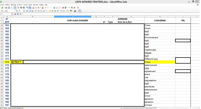 Enfin, un autre index, prenant la forme d’un fichier Word, listerait les doléances des habitants auprès des services de la Police municipale, entre 2015 et 2017, dûment accompagné de leurs coordonnées.