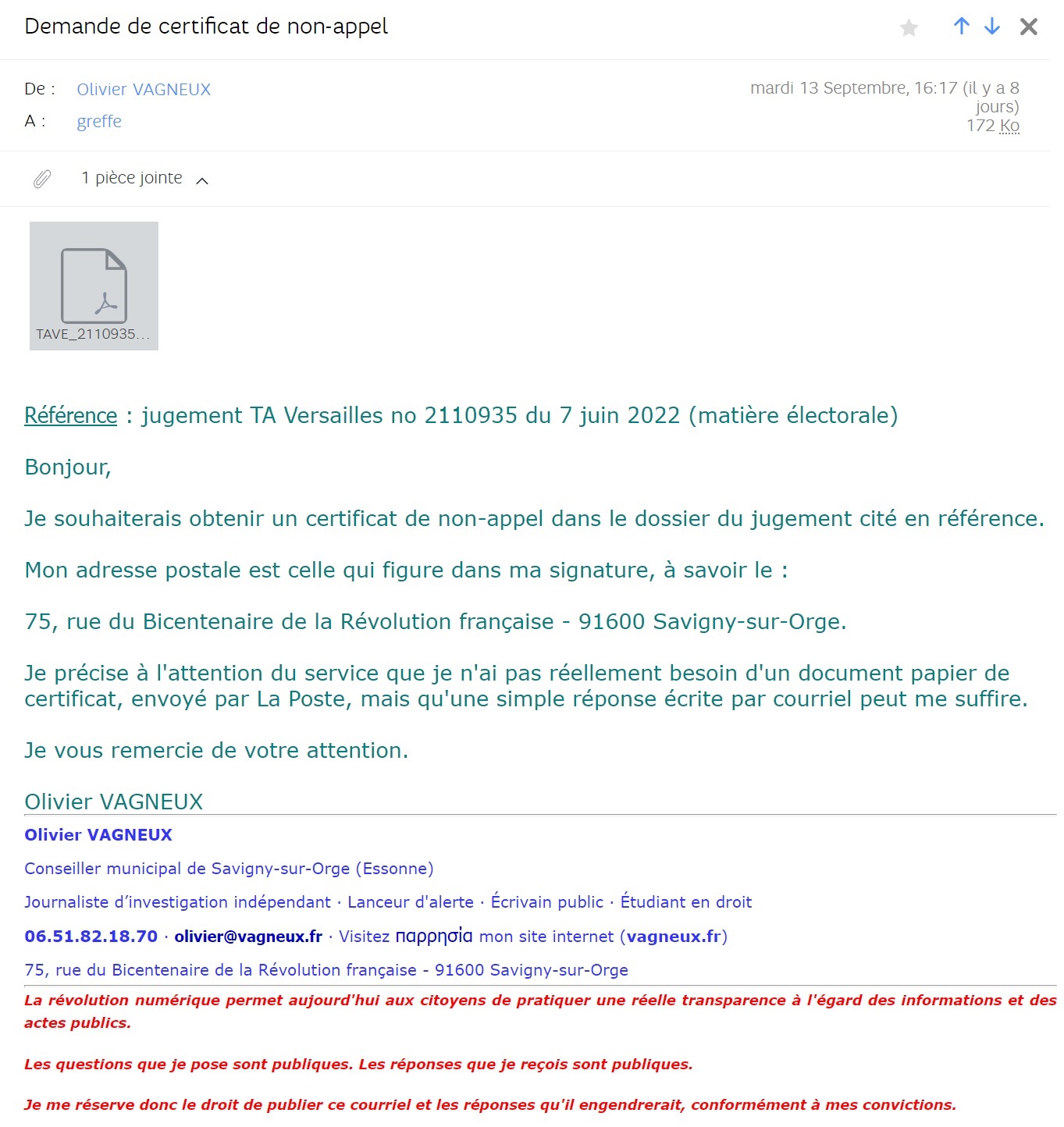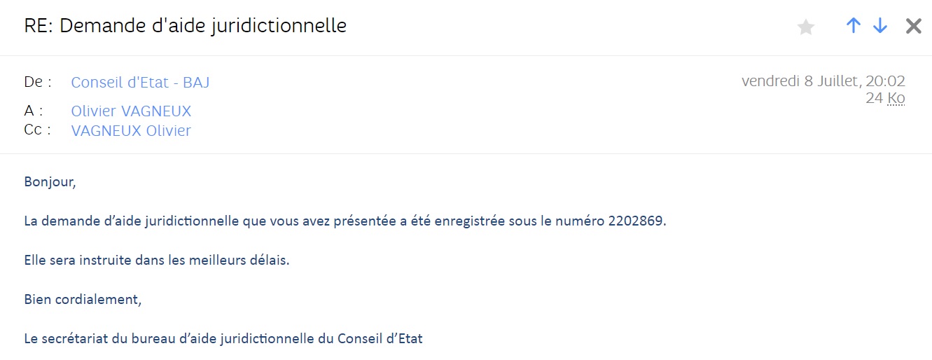 Bref, j’ai écrit au greffe du Conseil d’État pour solliciter un certificat de non-appel…