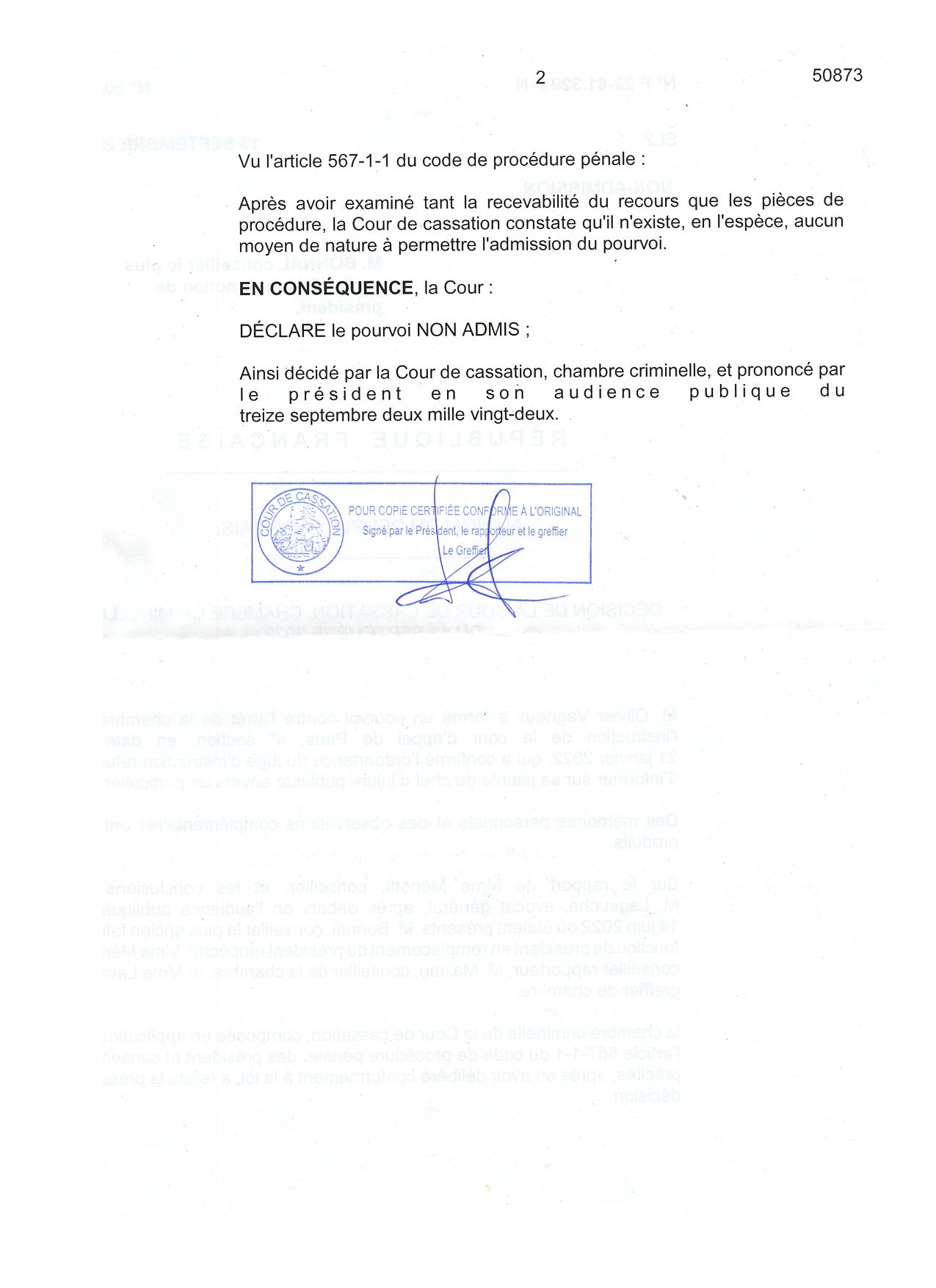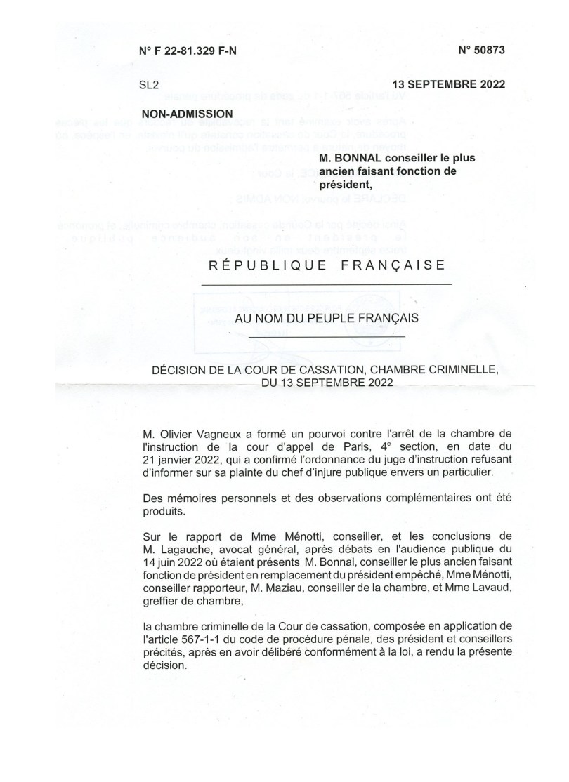 Soyons clairs : c’est quand même une défaite puisque mon pourvoi n’est pas admis.