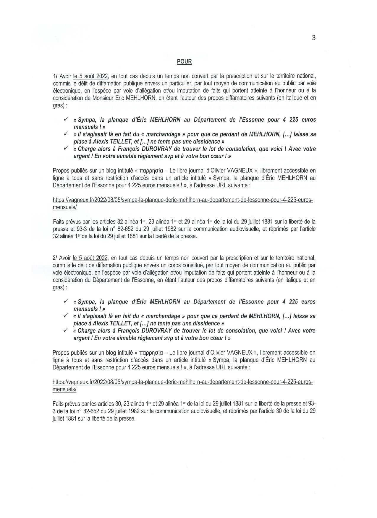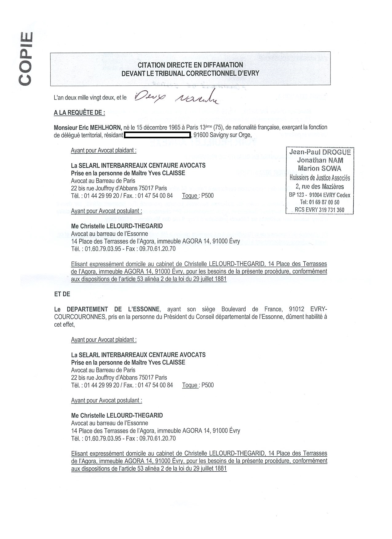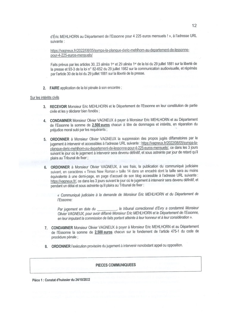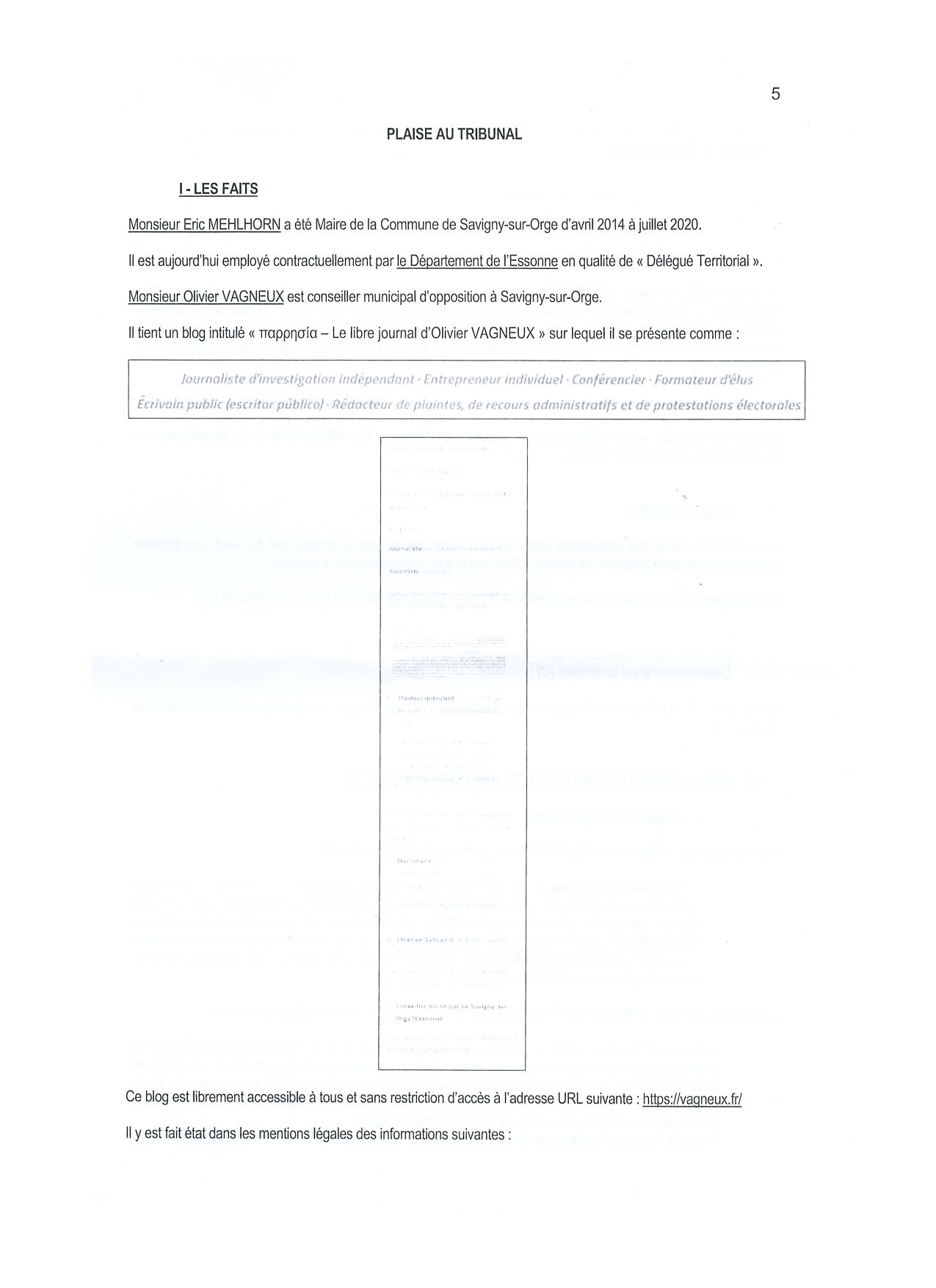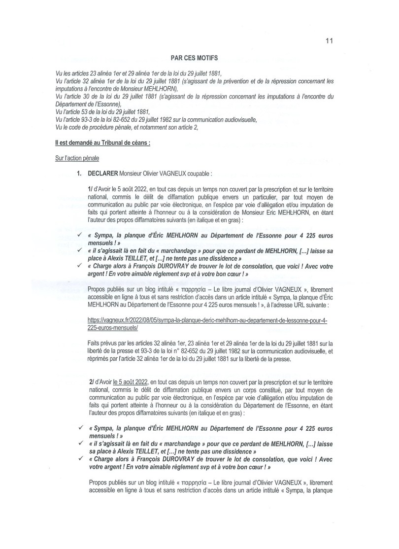 Étonnamment, je ne suis présenté que comme conseiller municipal, alors que je ne sais pas trop ce que cela vient foutre ici. Là, j’agissais comme journaliste et lanceur d’alerte (oups, c’est ce que je vais plaider).