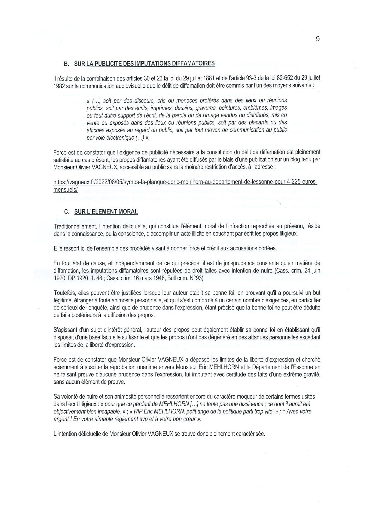 L’avantage, c’est que MEHLHORN me cite en tant que fonctionnaire, donc que je n’aurais pas à m’emmerder pour l’offre de preuve, que je pourrais produire par les voies ordinaires.