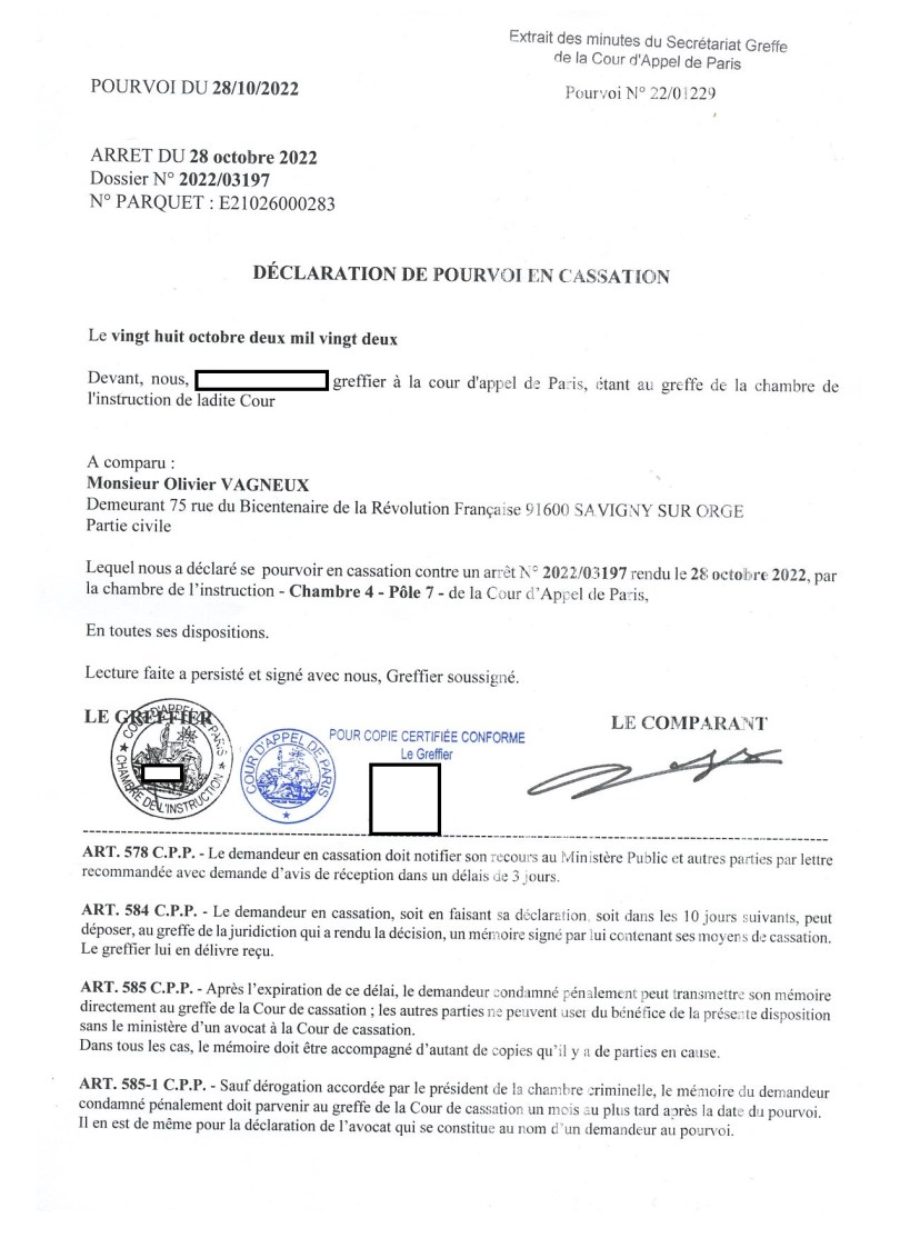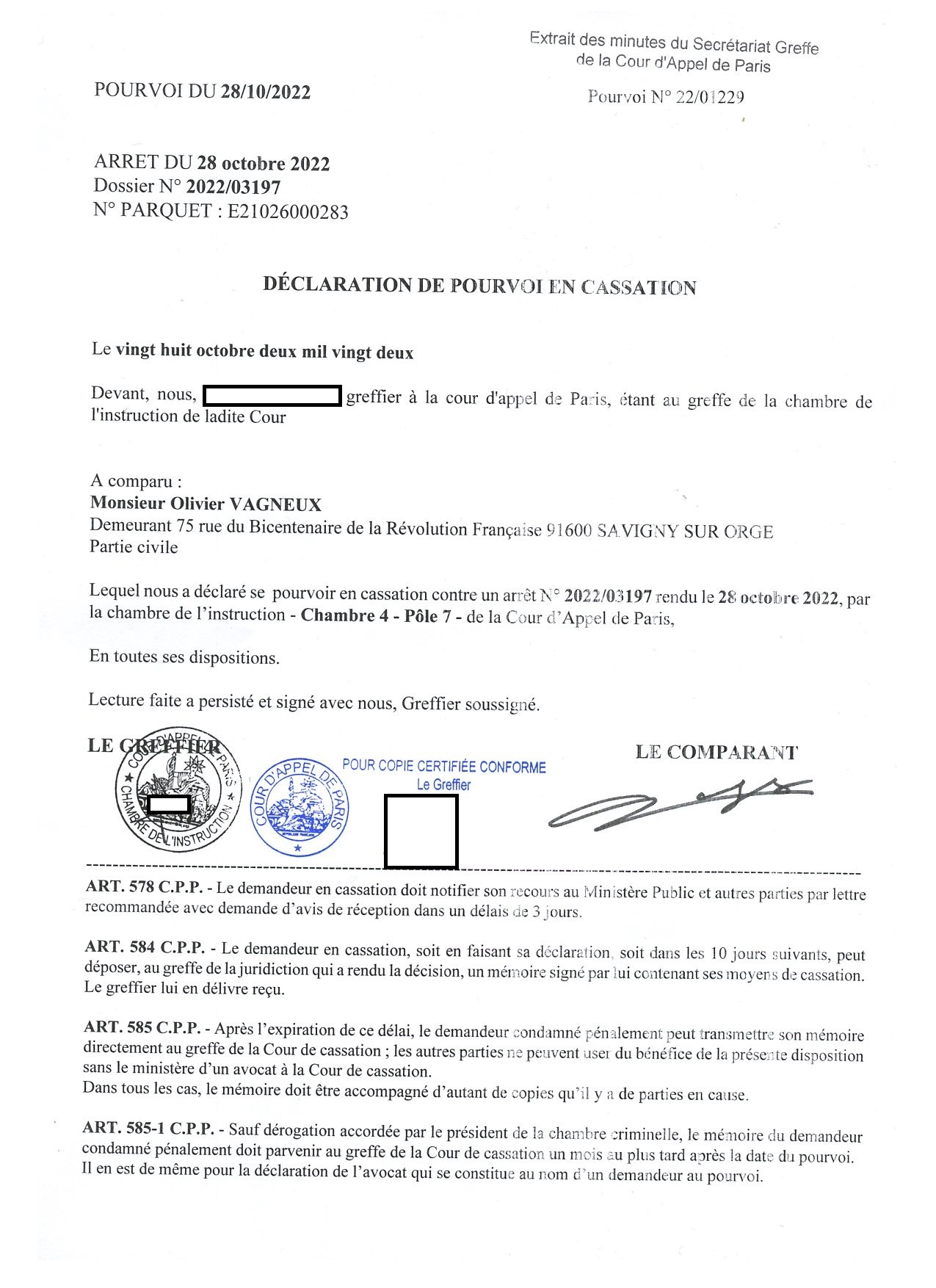 J’ignore encore qui a déclenché l’action publique (si c’est TEILLET, la procureure ou les juges du Tribunal de Paris).