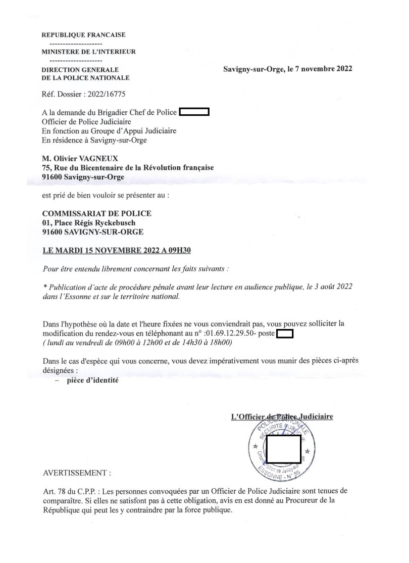 7. Cette affaire n’est pas sans me rappeler quand une juge d’instruction d’Évry-Courcouronnes m’avait transmis copie d’un dossier de procédure qui n’était pas le mien puis quand elle avait ensuite déclenché un article 40 du code de procédure pénale (saisine du Parquet) pour m’accuser d’avoir violé le secret de l’enquête préliminaire.