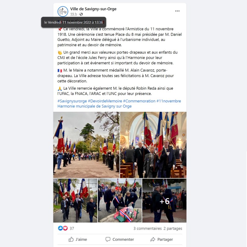 Ce 11 novembre 2022, le maire remettait une médaille à Alain CAVAROZ.