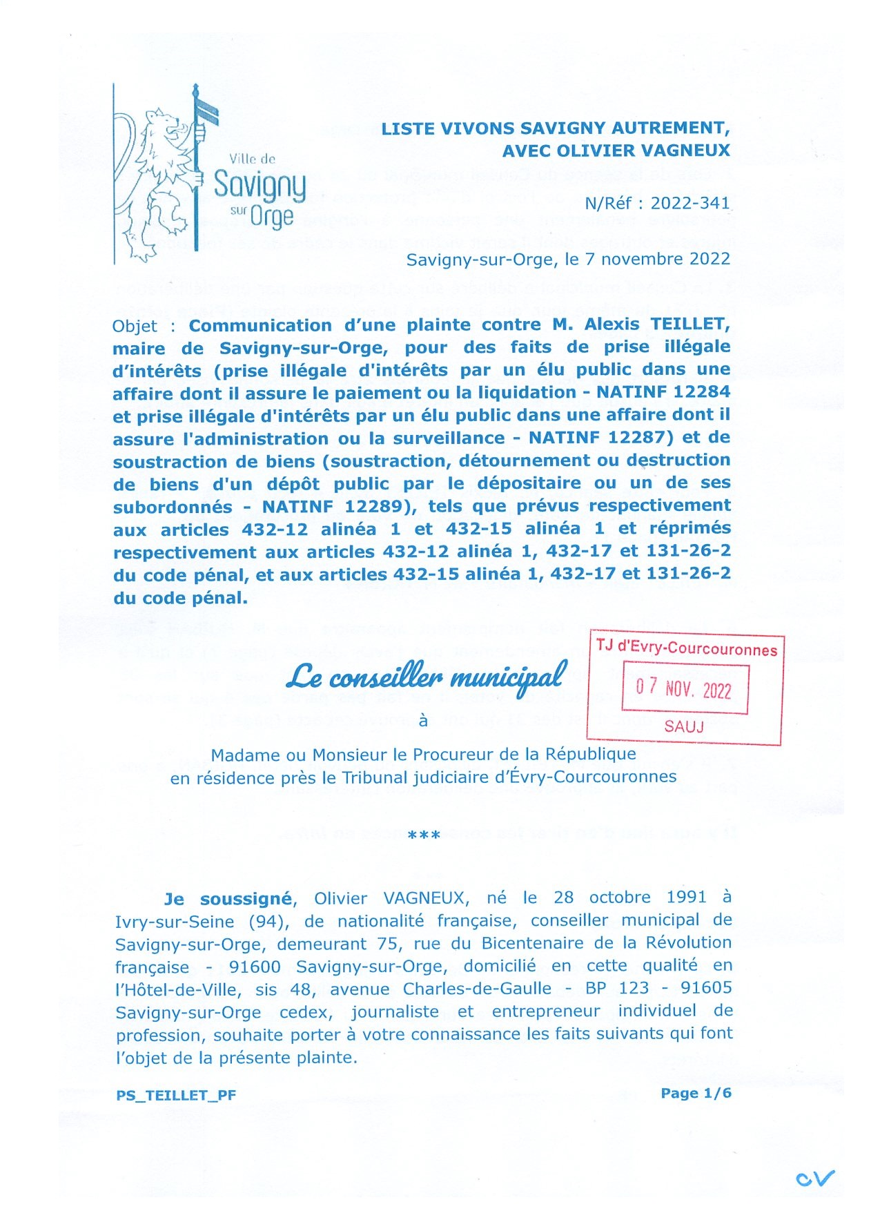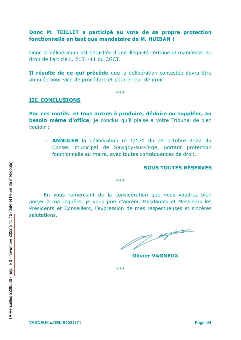 Première délibération dont j’avais de toute façon demandé l’annulation, AVANT que TEILLET ne la remplace !