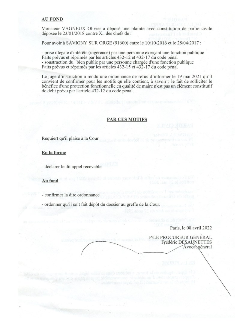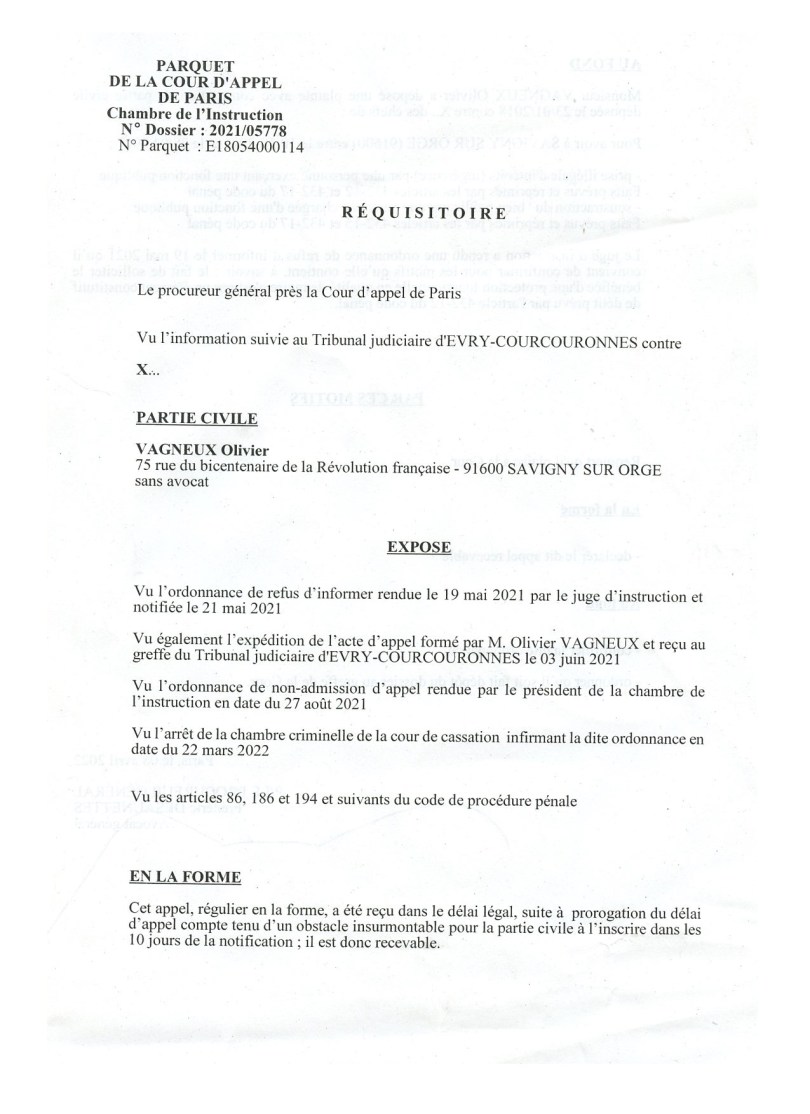 Mais je peux aussi monter à quatre s’il le faut ; même s’il sera maintenant difficile au juge d’instruction d’Évry-Courcouronnes d’aller contre « l’autorité de la chose jugée » par la chambre de l’instruction !