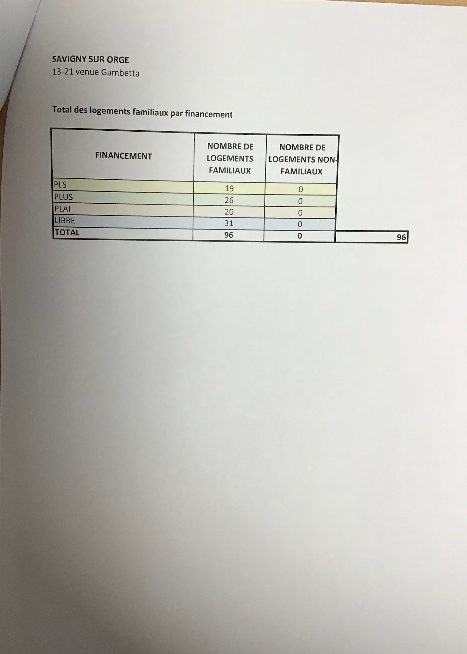 65 logements sociaux (67 %) et 31 logements en accession (33 %), en 2 immeubles de 10 mètres de haut (R + 1 + comble donc 3 niveaux). 2 entrées par immeuble : une pour les accédants et une pour les gueux. Seulement 65 places de stationnement.