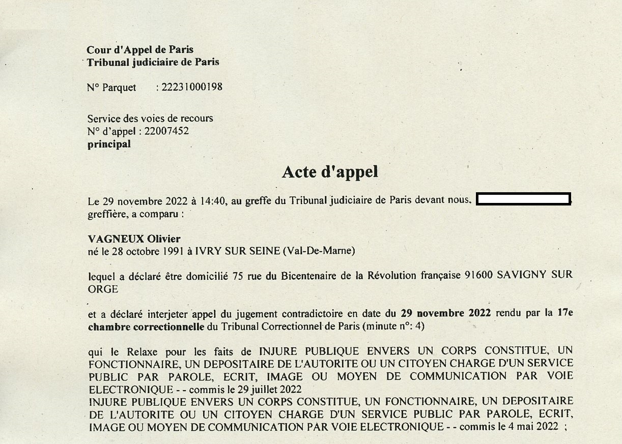 Le Parisien de l’Essonne, qui comparaîtra ce 13 janvier 2023 pour des faits de diffamation à mon encontre, est revenu sur ma condamnation, en premier ressort, pour des faits d’injures.