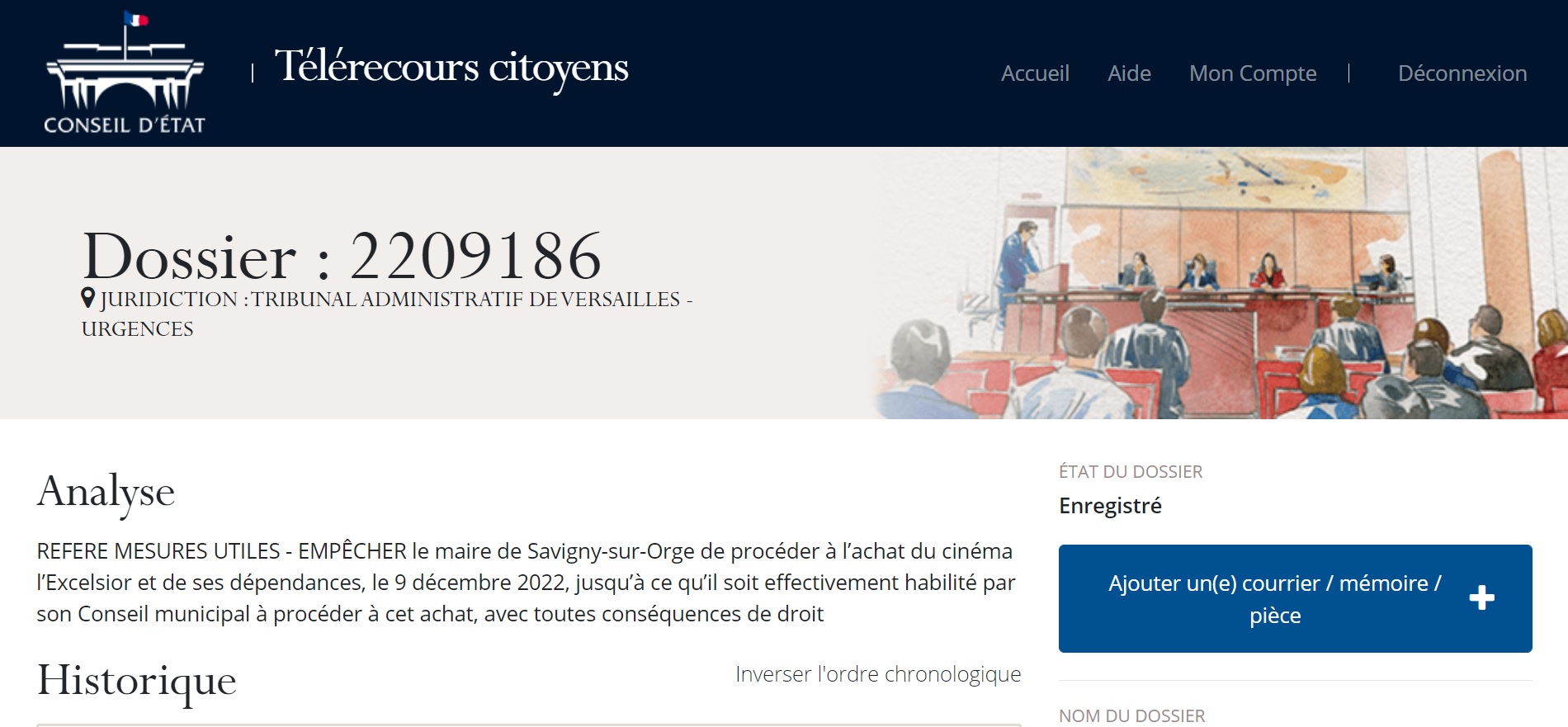 J’attends sinon l’issue de mon référé conservatoire que j’ai déposé ce mercredi matin pour empêcher TEILLET d’acheter le cinéma vendredi dans des conditions qui ne sont pas celles par lesquelles il avait été habilité par le Conseil municipal.