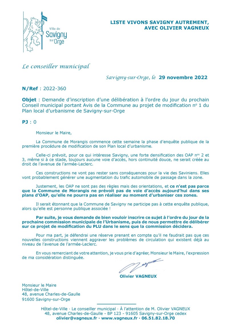 Vous avez des documents de plan local d’urbanisme (PLU) qui vous disent expressément que les nouveaux habitants utiliseront les bus qui passent par Savigny pour aller à la gare. D’autres qui vous parlent de la circulation par Savigny, qui va venir s’ajouter à celle déjà existante.