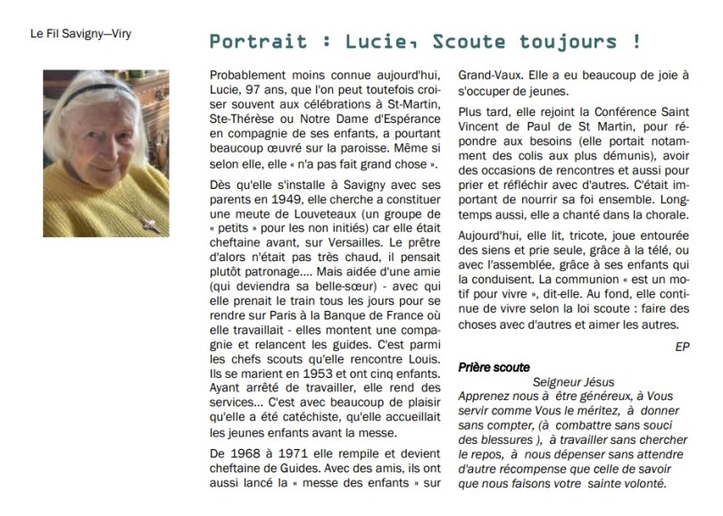Si vous pouvez retrouver son portrait dans le journal du secteur pastoral, édition de janvier 2022, que j’ai copié en bas d’article, je voudrais plutôt vous partager ce que j’ai vécu avec elle personnellement.