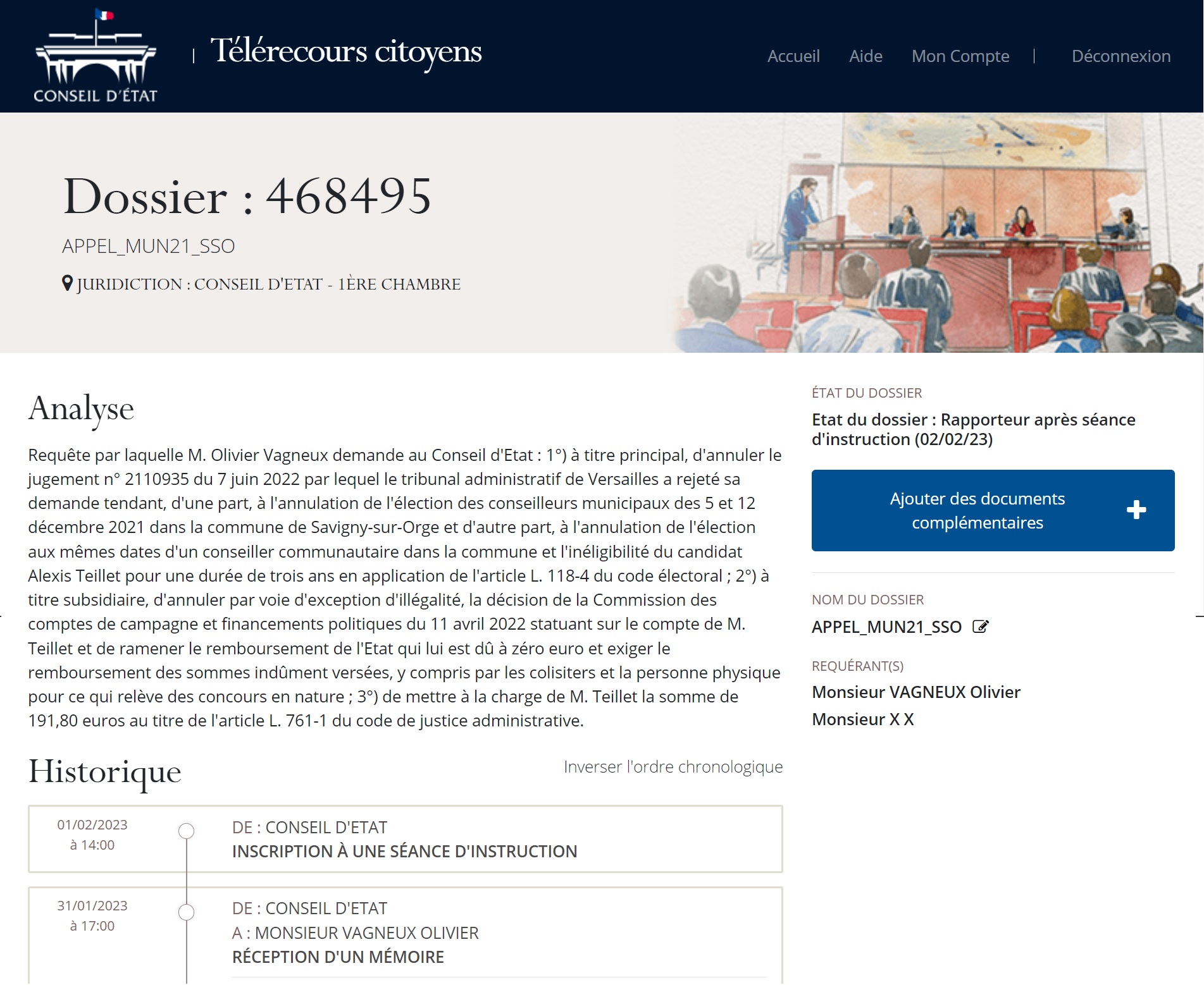 À priori, le retour au rapporteur est positif car cela signifie qu’à l’issue du vote pendant la séance d’instruction (une formation solennelle plutôt rare lorsque l’affaire est compliquée ou que les juges ne sont pas d’accord entre eux), les juges favorables à l’examen de ma requête ont été majoritaires sur les juges favorables à son rejet ; et donc qu’une instruction contradictoire va pouvoir commencer.