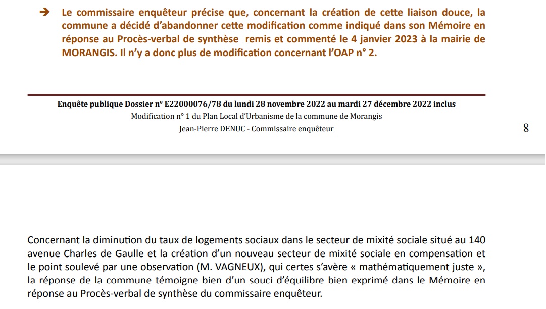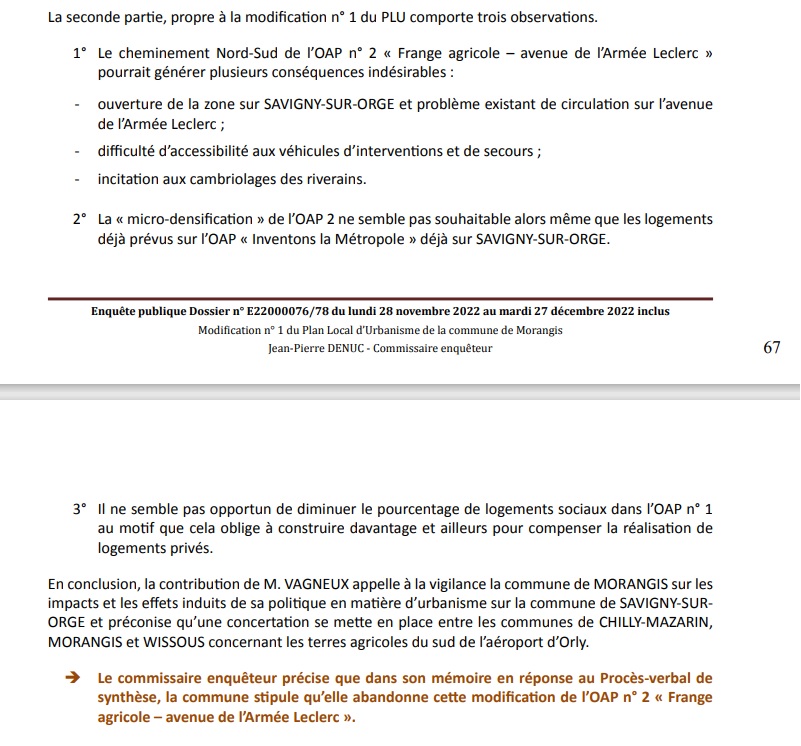 Ce qui me fait doucement sourire est que la Commune de Morangis dit qu’elle renonce « au vu des remarques formulées par les différents intervenants » (page 71)