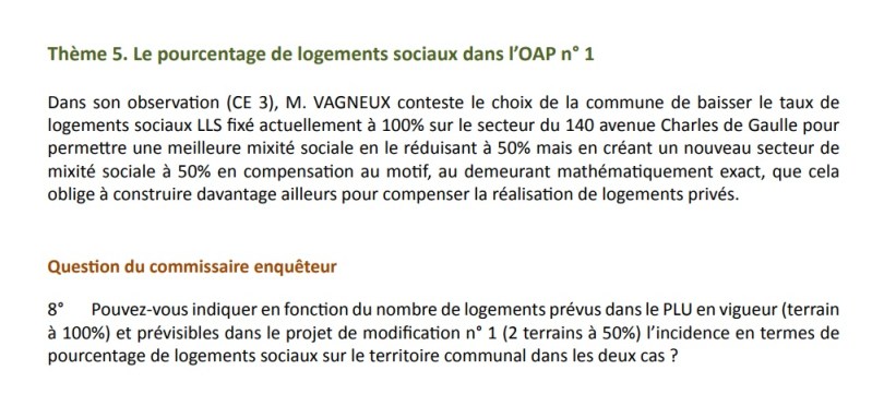 dans son mémoire en réponse aux observations du commissaire-enquêteur !