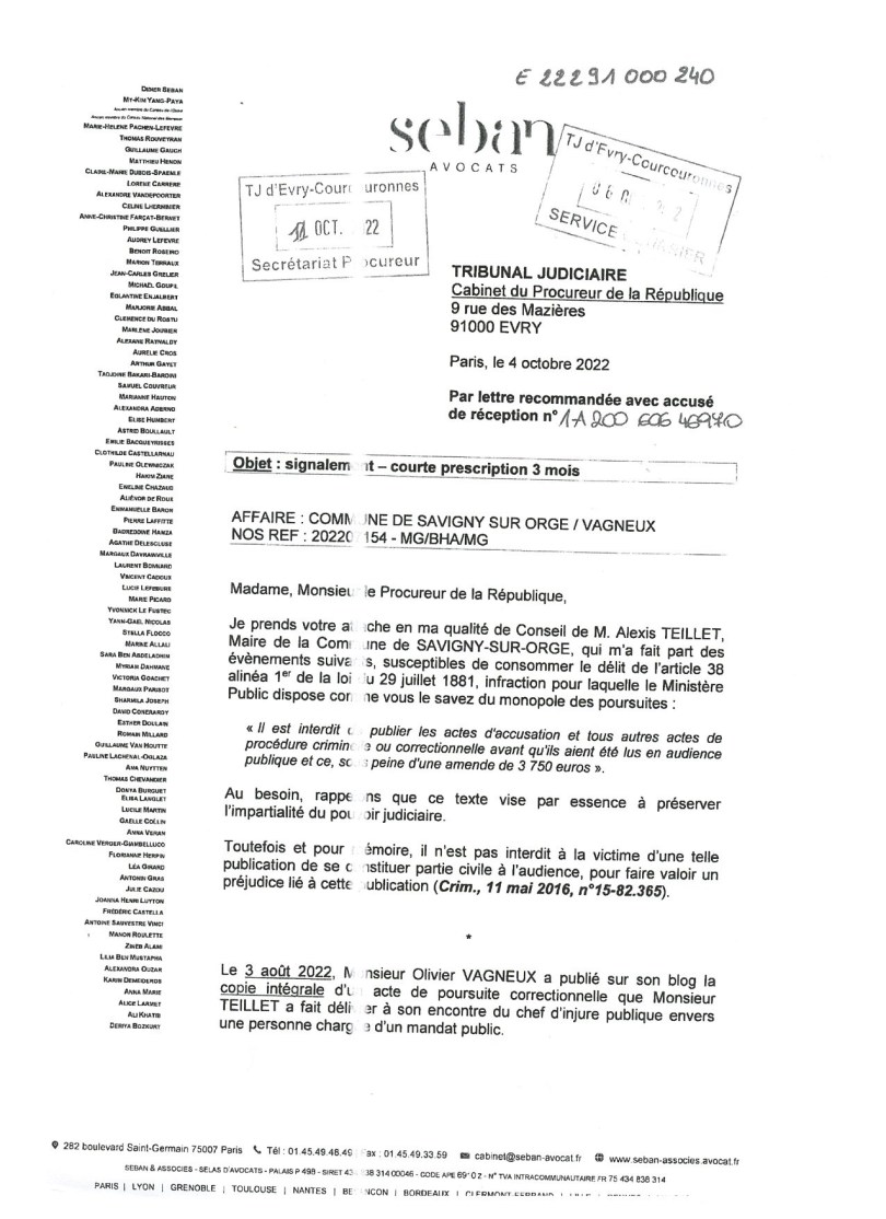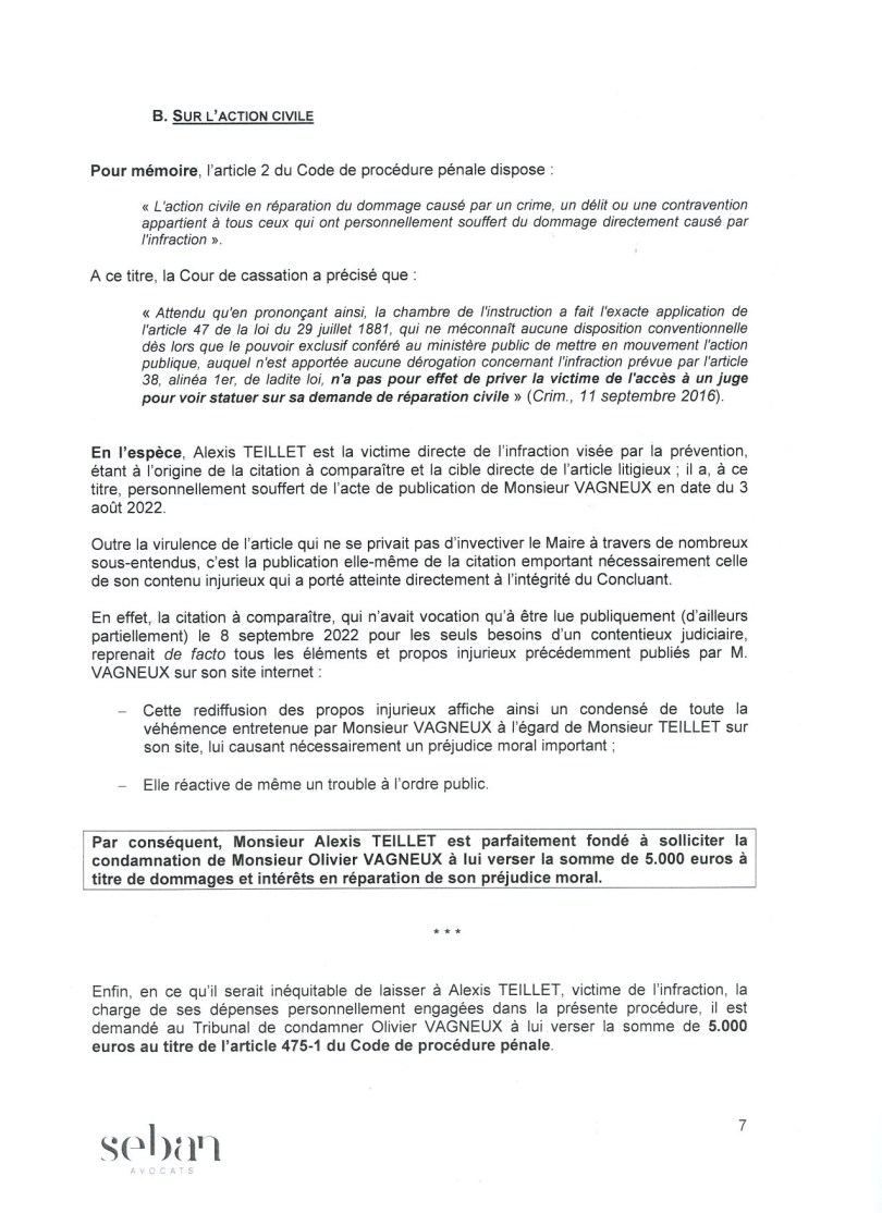 Maintenant, ce qui est intéressant est que TEILLET a utilisé les avocats de la Commune, aux frais des contribuables, pour défendre sa personne physique ; ce qu’il n’a pas droit de faire !