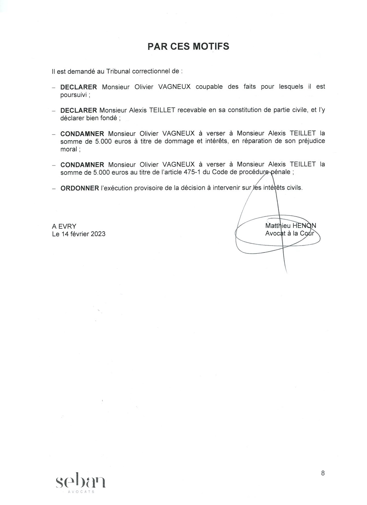 Du coup, j’ai demandé pourquoi il me demandait présentement 10 000 euros en tant que maire puisque ce n’était pas le maire qui est préjudicié, mais la personne chargée du mandat…