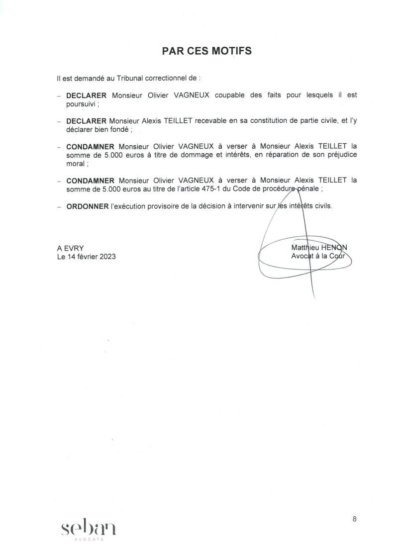 C’était jouissif ; juste parce que TEILLET va y laisser 1 200 euros de frais d’avocat !