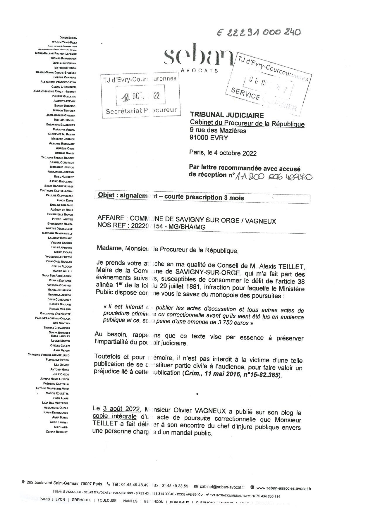 Surtout qu’en plus l’avocat postulant du maire l’a bien écrit dans sa lettre de dénonciation, dont je dispose, et comme l’avocat plaidant l’a en plus bien redit, en insistant, et que ce sera donc dans la note d’audience, que je vais demander…