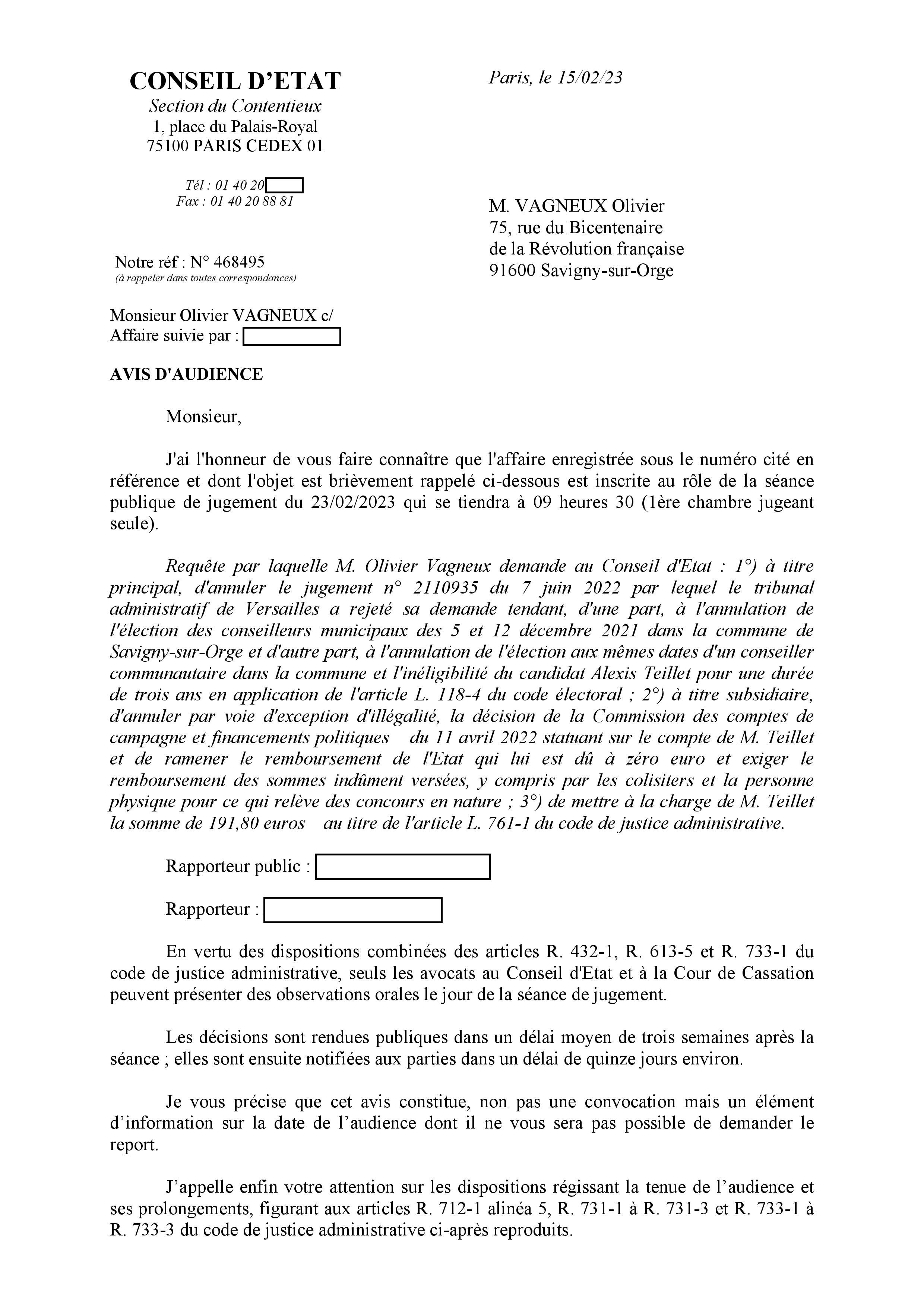 Même si la bonne nouvelle est que j’ai reçu un moyen d’ordre public qui révèle que le Conseil d’État va bien juger au fond, sans s’arrêter sur la procédure, enfin normalement…