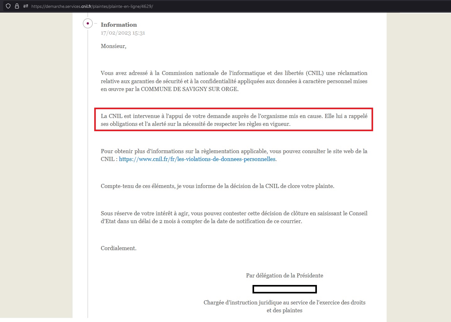 – d’autre part, le maire de Savigny-sur-Orge, m’a écrit qu’il n’y avait rien d’illégal dans son comportement de divulguer des courriers professionnels en les commentant.