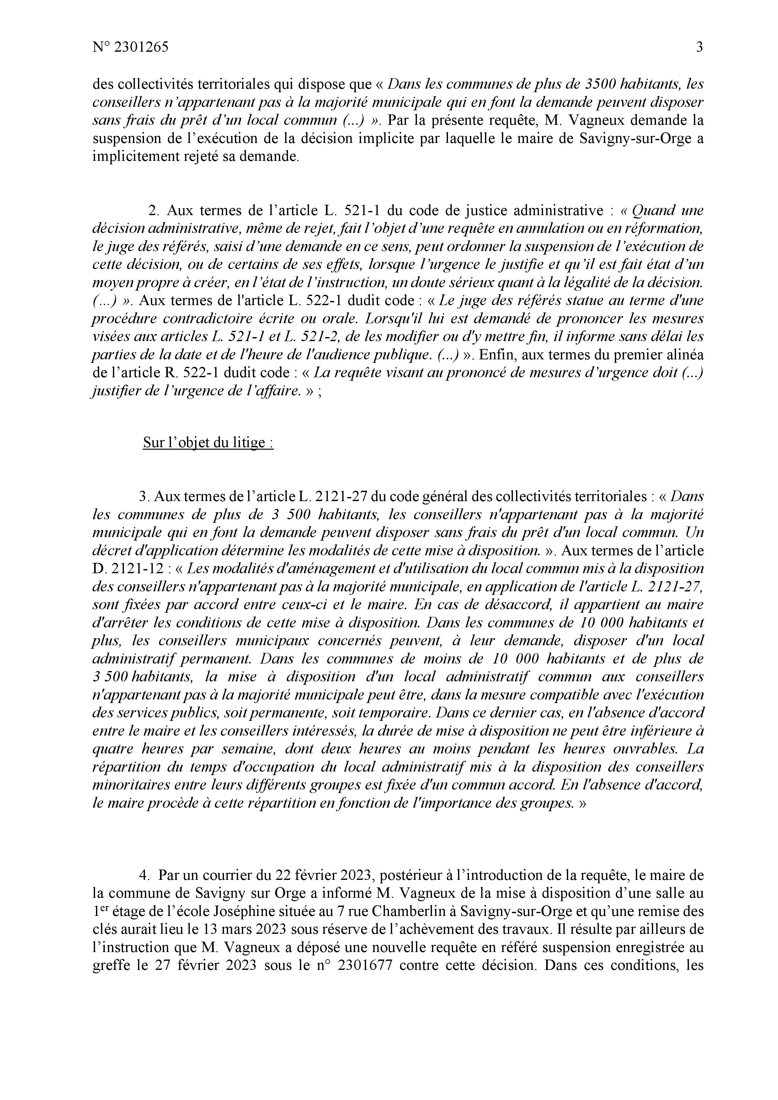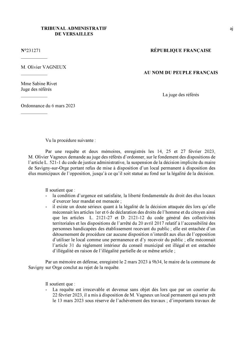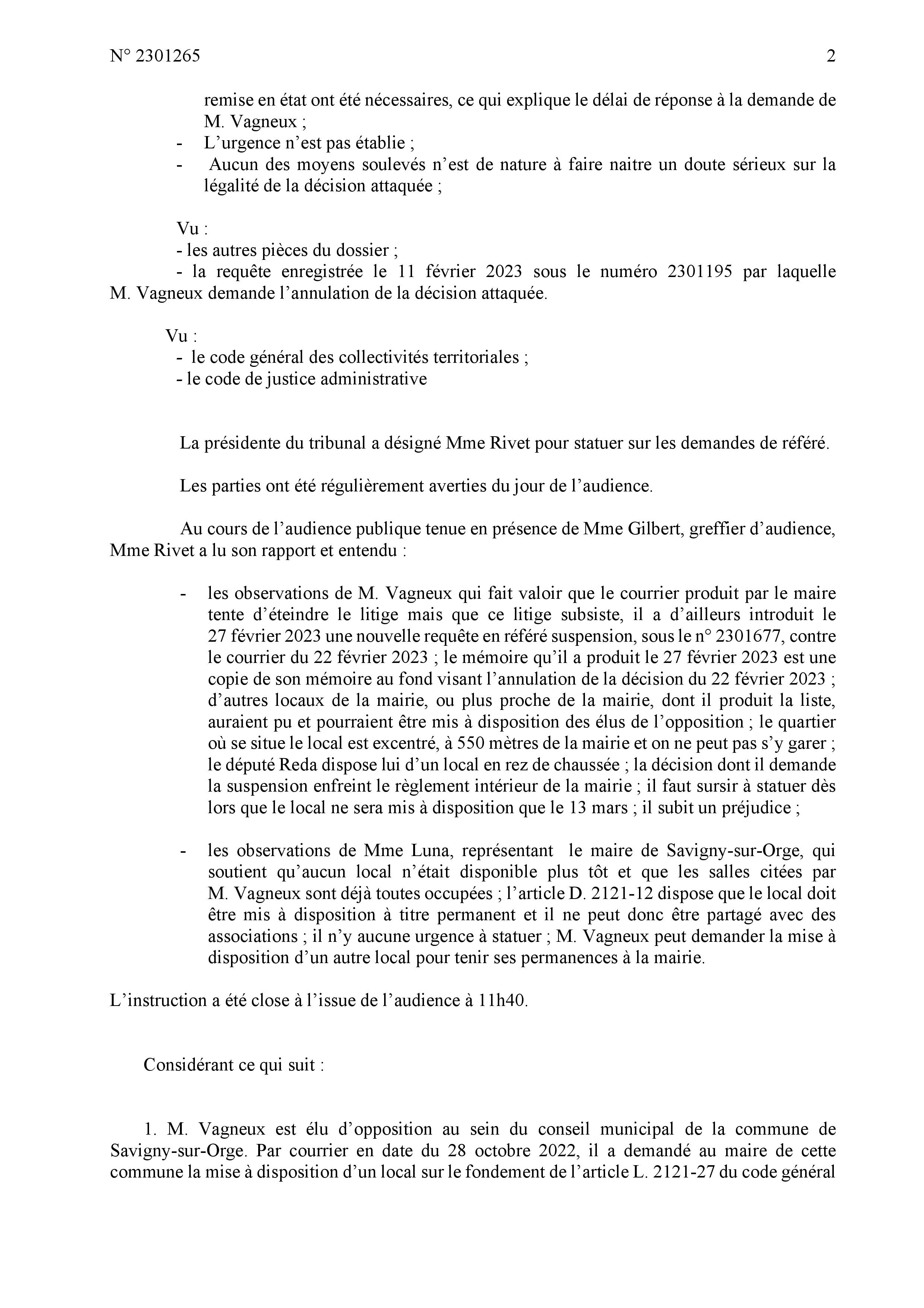 Ce que je trouve très frustrant est que le juge des référés ne peut pas juger de l’opportunité du local mis à disposition ; donc que TEILLET pouvait bien me promettre une salle sur Neptune qu’il éteignait l’urgence… Je l’avais compris dès le 24 février et je ne pouvais plus rien désamorcer…