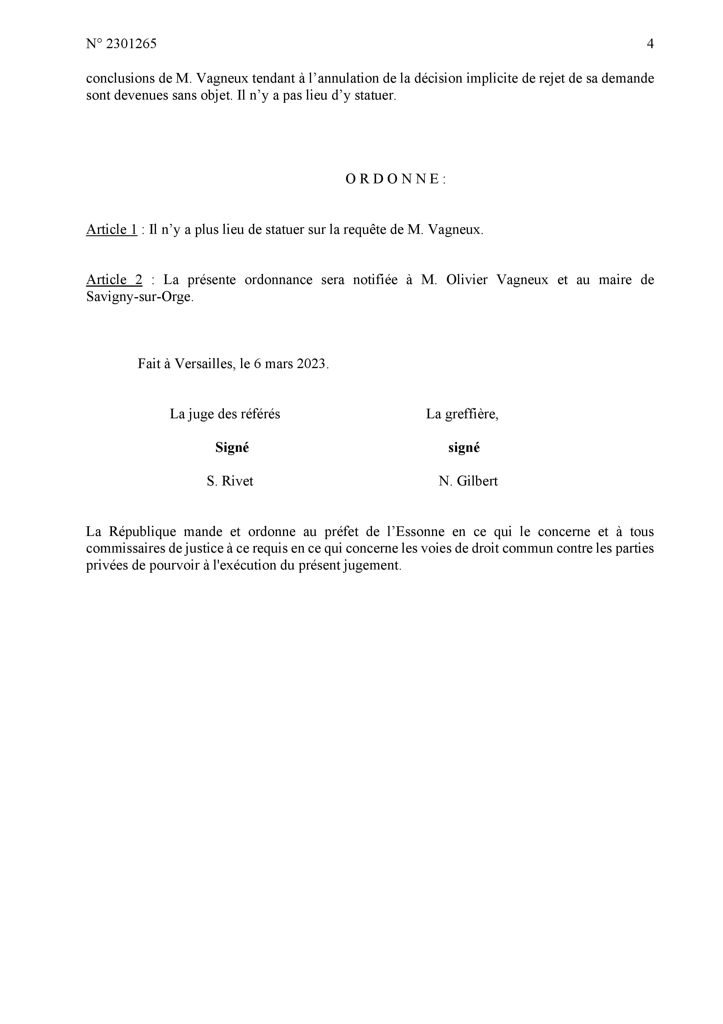 « Il n’y a plus lieu de statuer sur la requête de M. VAGNEUX. »