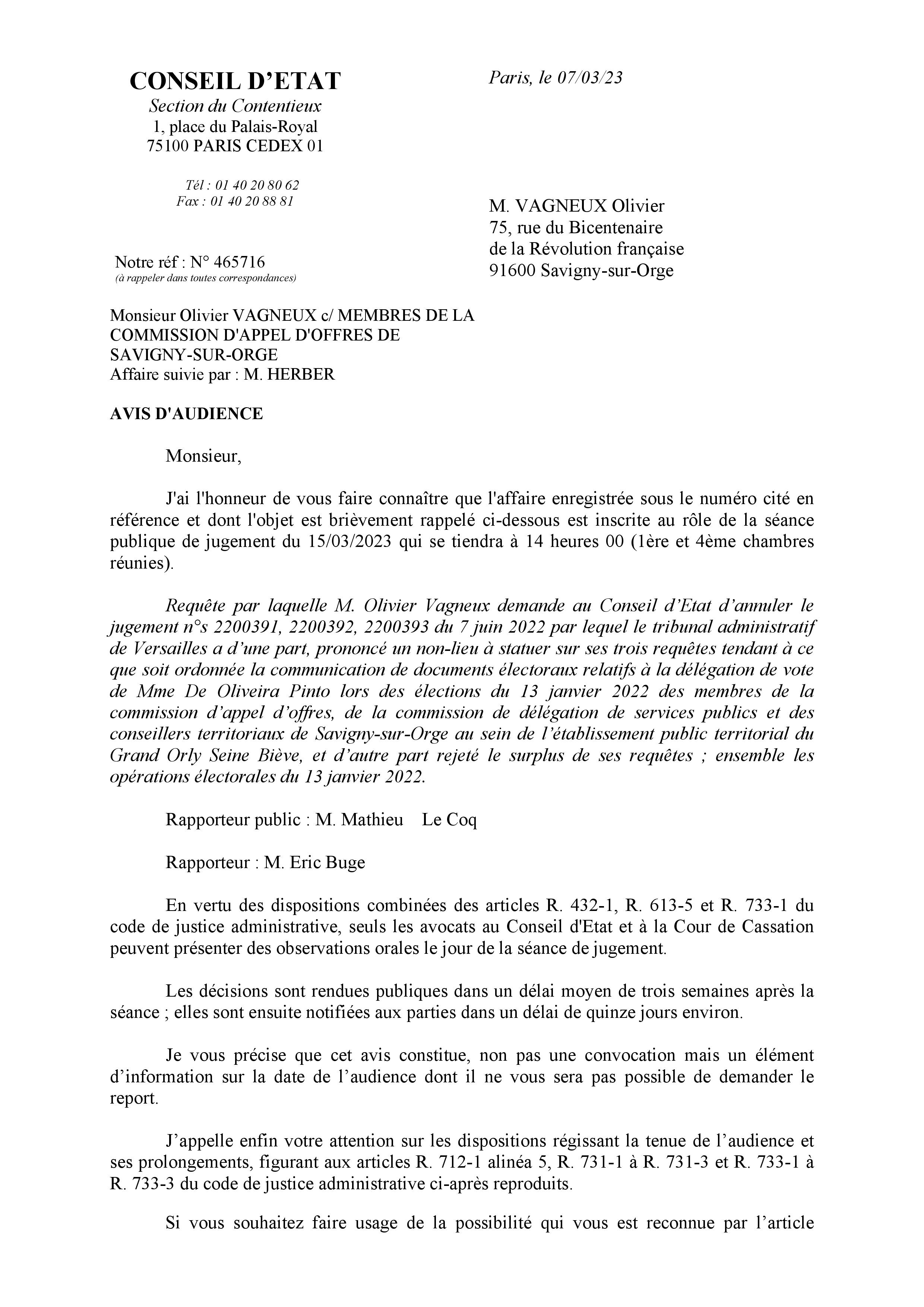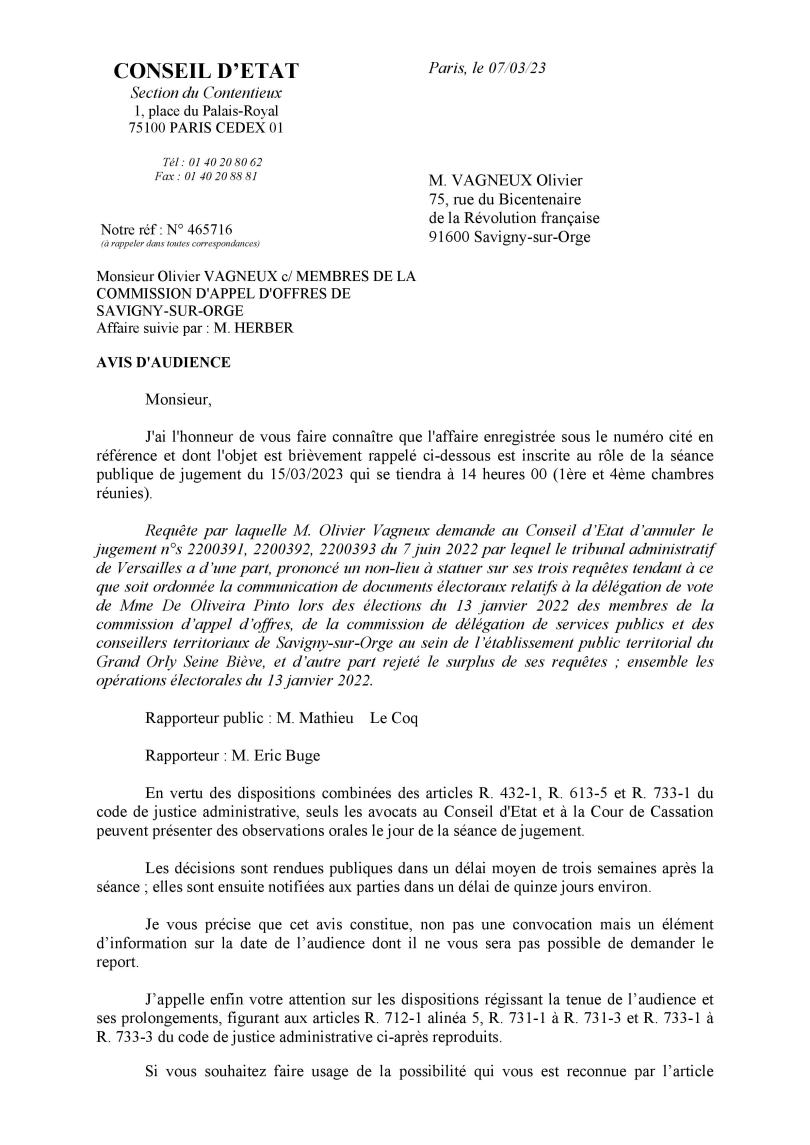 Malheureusement, je ne pourrais pas assister à l’audience, en tant que j’aurais déjà quitté this shit ass fucking town of Savigny-upon-Orge, après mon échec à faire annuler l’élection municipale.