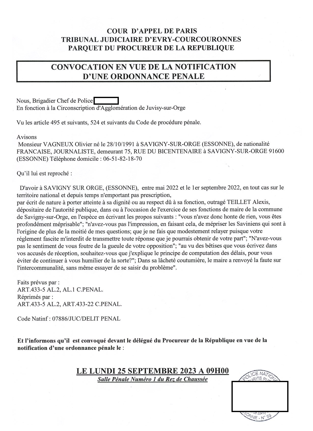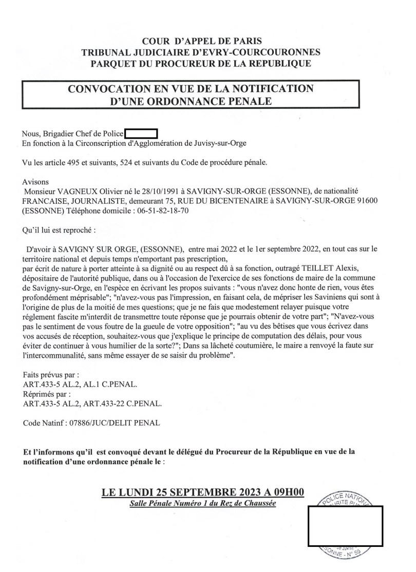 Alors, l’ordonnance pénale, jusque-là, je m’en foutais un peu.
