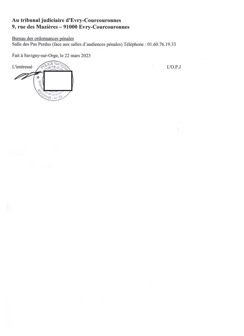 Toujours est-il qu’en arrivant au commissariat, l’officier de police judiciaire me demande : « vous allez faire opposition ? »