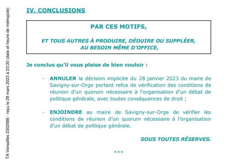 N’ayant pas la réponse, et ne l’ayant pas trouvée dans la jurisprudence accessible, je pose directement cette question de droit au Tribunal administratif (de Versailles).