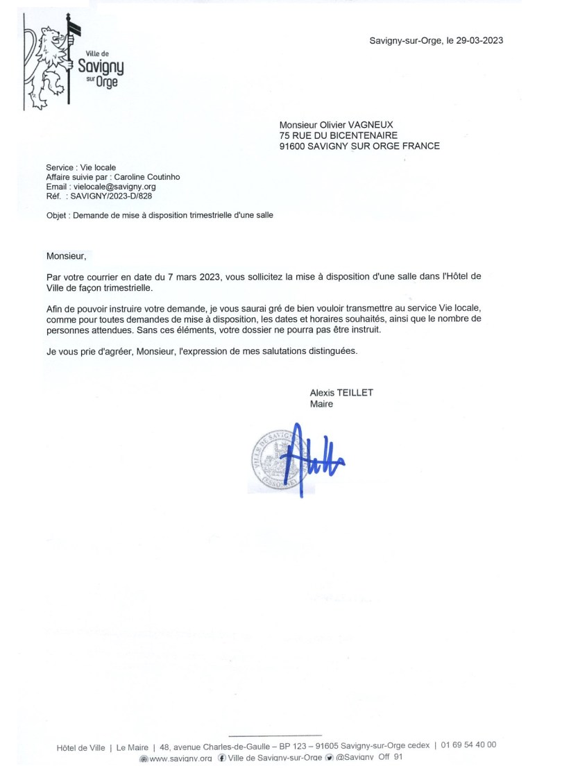 Pour mémoire, on était alors en train de discuter de la légalité du refus d’Alexis TEILLET de mettre à disposition des élus des oppositions un local administratif permanent.