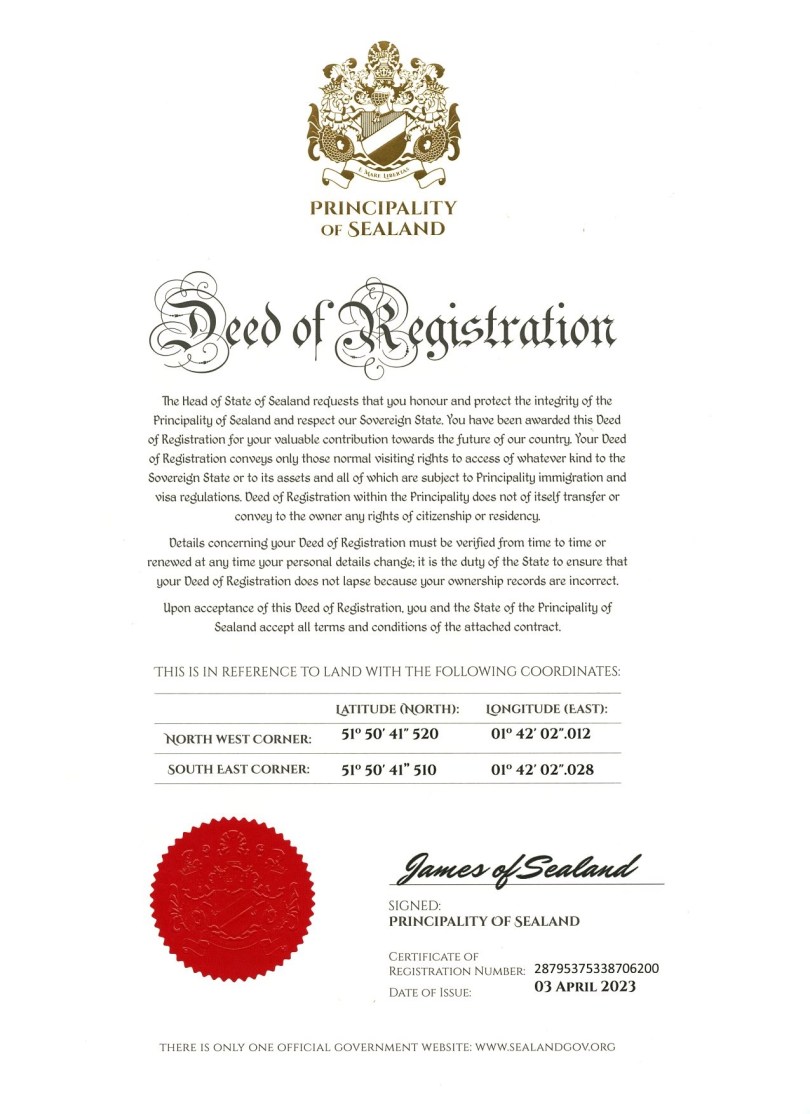 La page Wikipedia de Sealand : https://fr.wikipedia.org/wiki/Principaut%C3%A9_de_Sealand