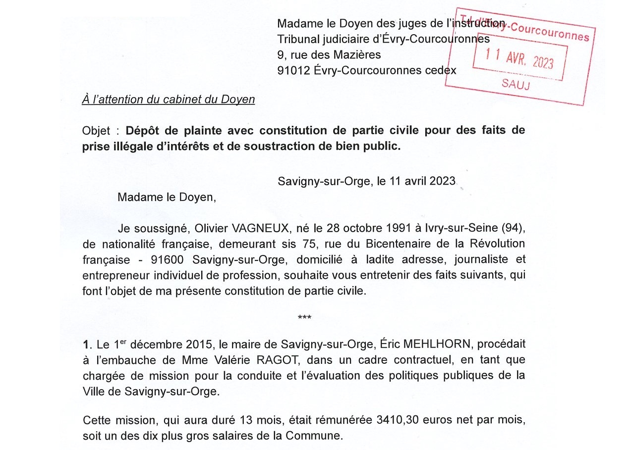 Pour mémoire, j’accuse Éric MEHLHORN et Valérie RAGOT de prise illégale d’intérêts et de soustraction de bien public, en ce que ce premier a embauché la seconde lorsqu’il était maire, pour évaluer les politiques publiques de la Commune pendant 13 mois, rémunérés chacun 3 410,30 € net, soit l’un des dix meilleurs salaires des agents municipaux ; laquelle nana a quand même fini sa mission sans jamais avoir rendu le moindre rapport d’évalutation !