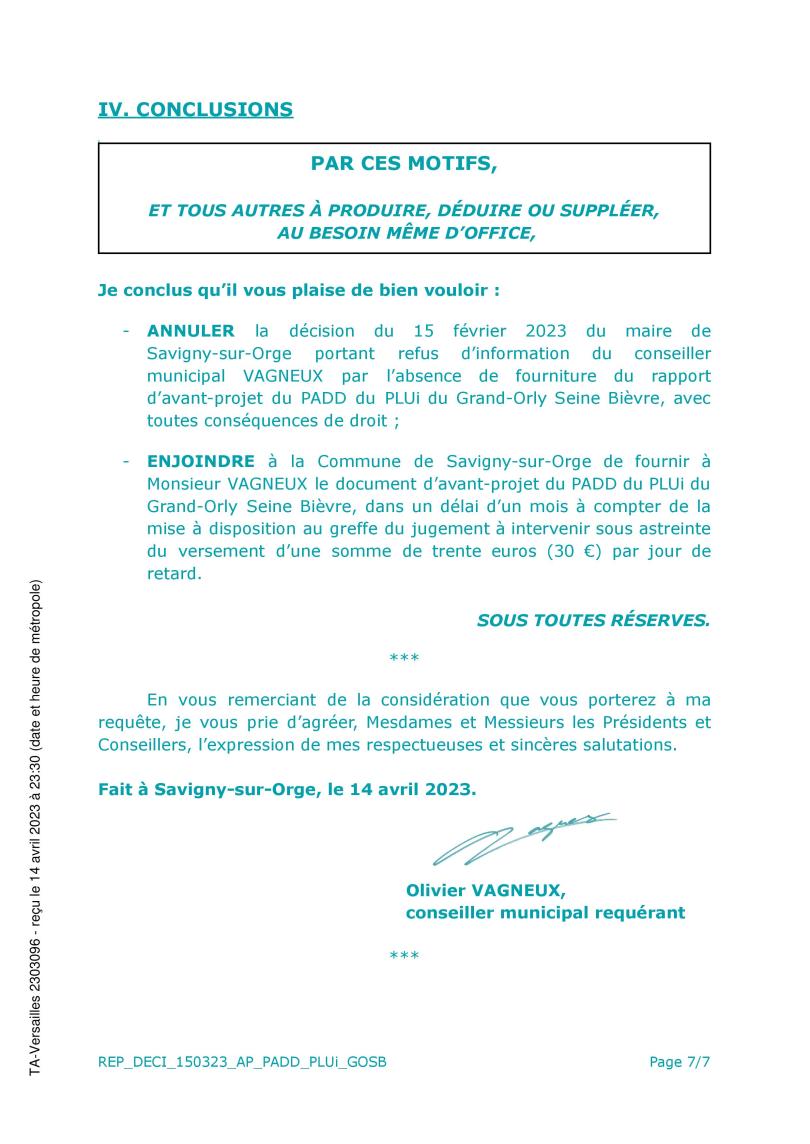 Alors je vais au tribunal administratif pour quand même obtenir ce rapport ! Pour le principe.