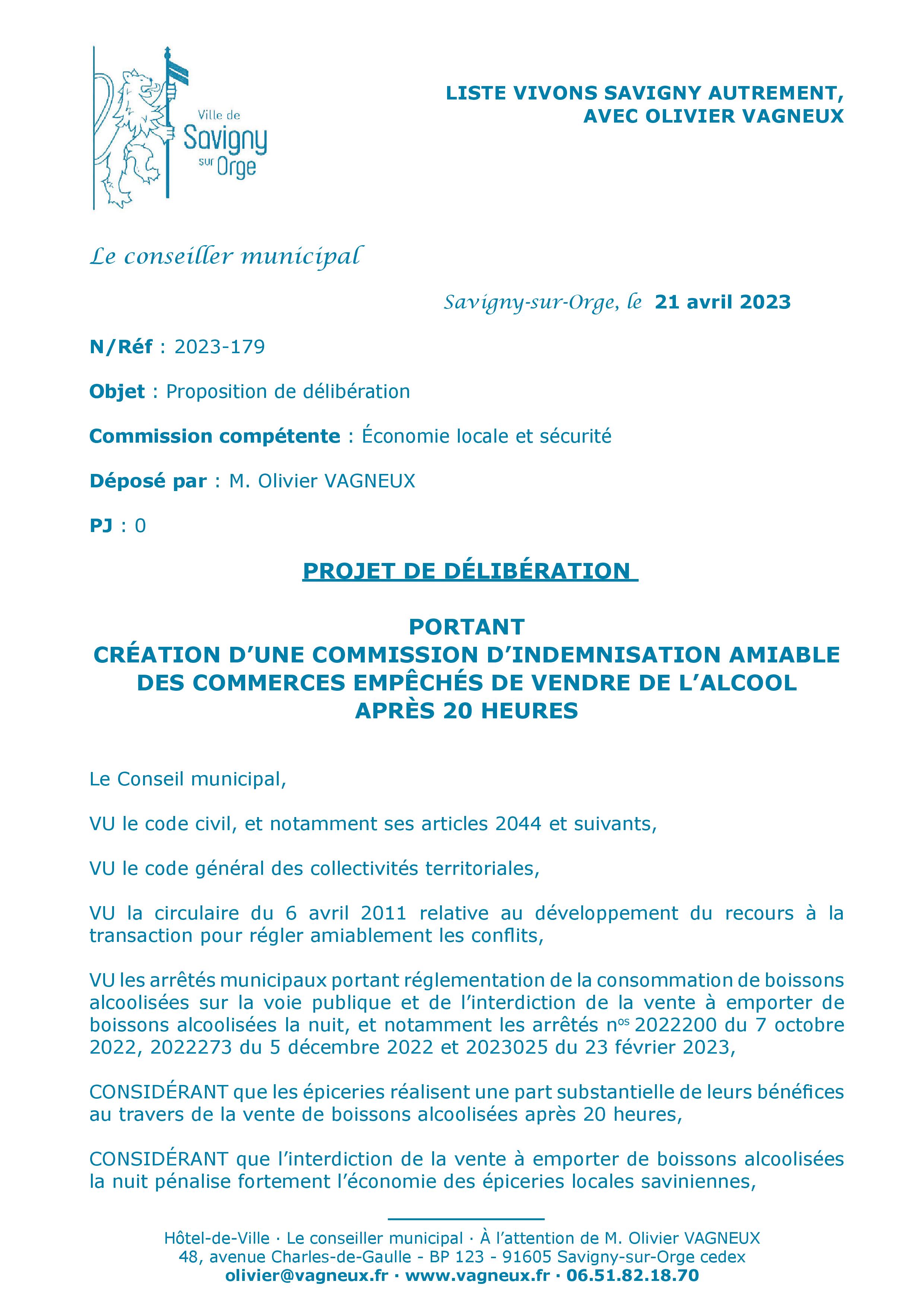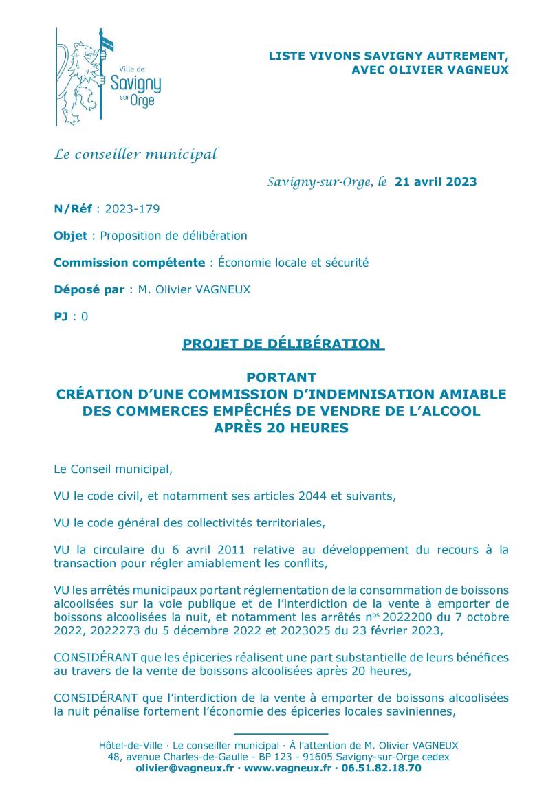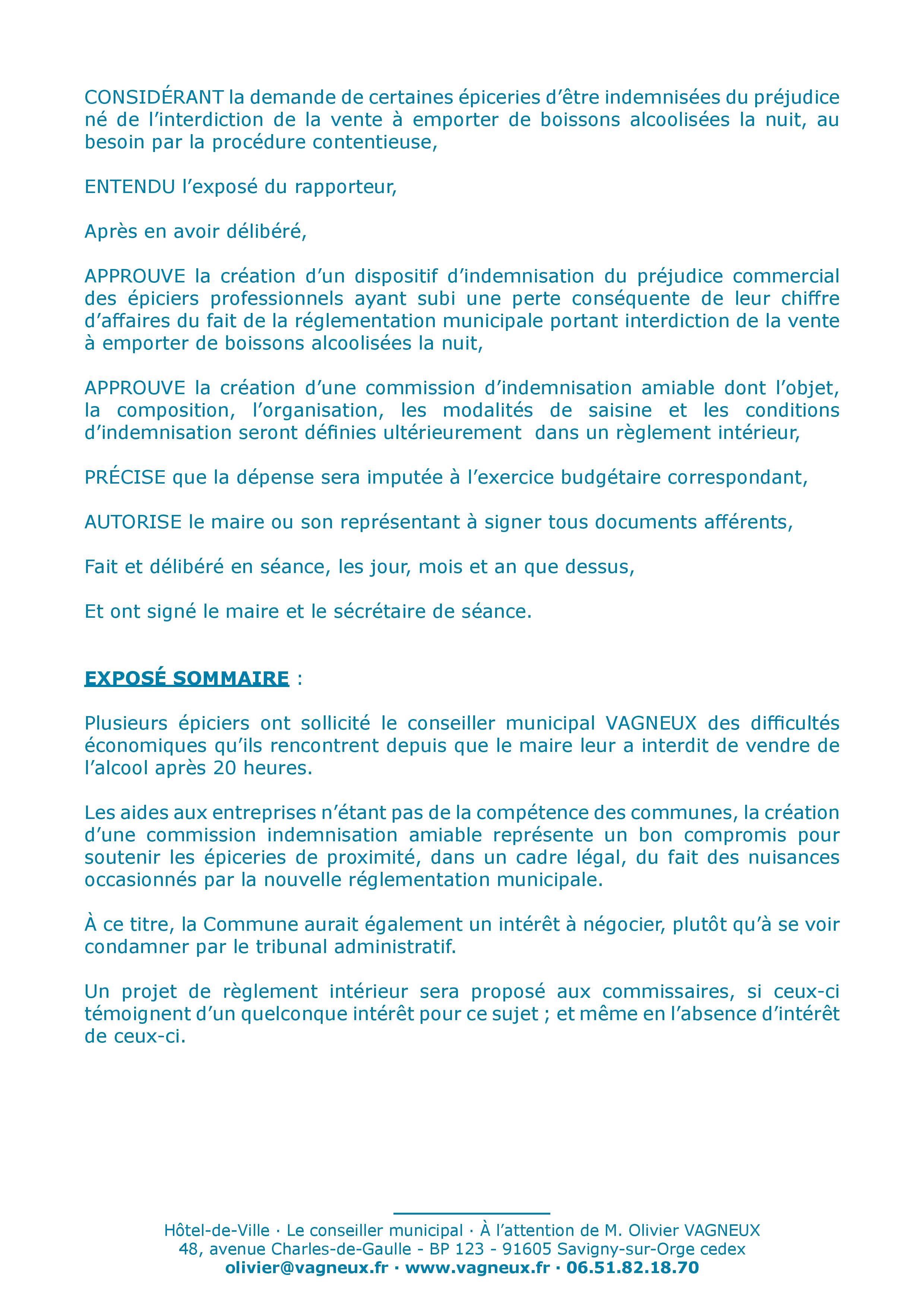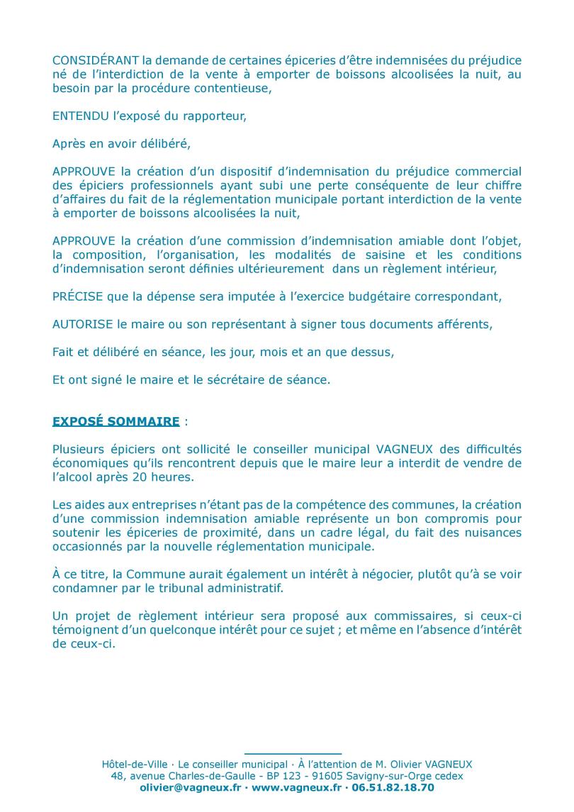 Et de seconde part, je pense que ma proposition de création d’une commission d’indemnisation amiable des épiciers, que TEILLET fout dans la merde, avec ses inutiles arrêtés d’interdiction de vente d’alcool après 20 heures, est beaucoup plus importante.