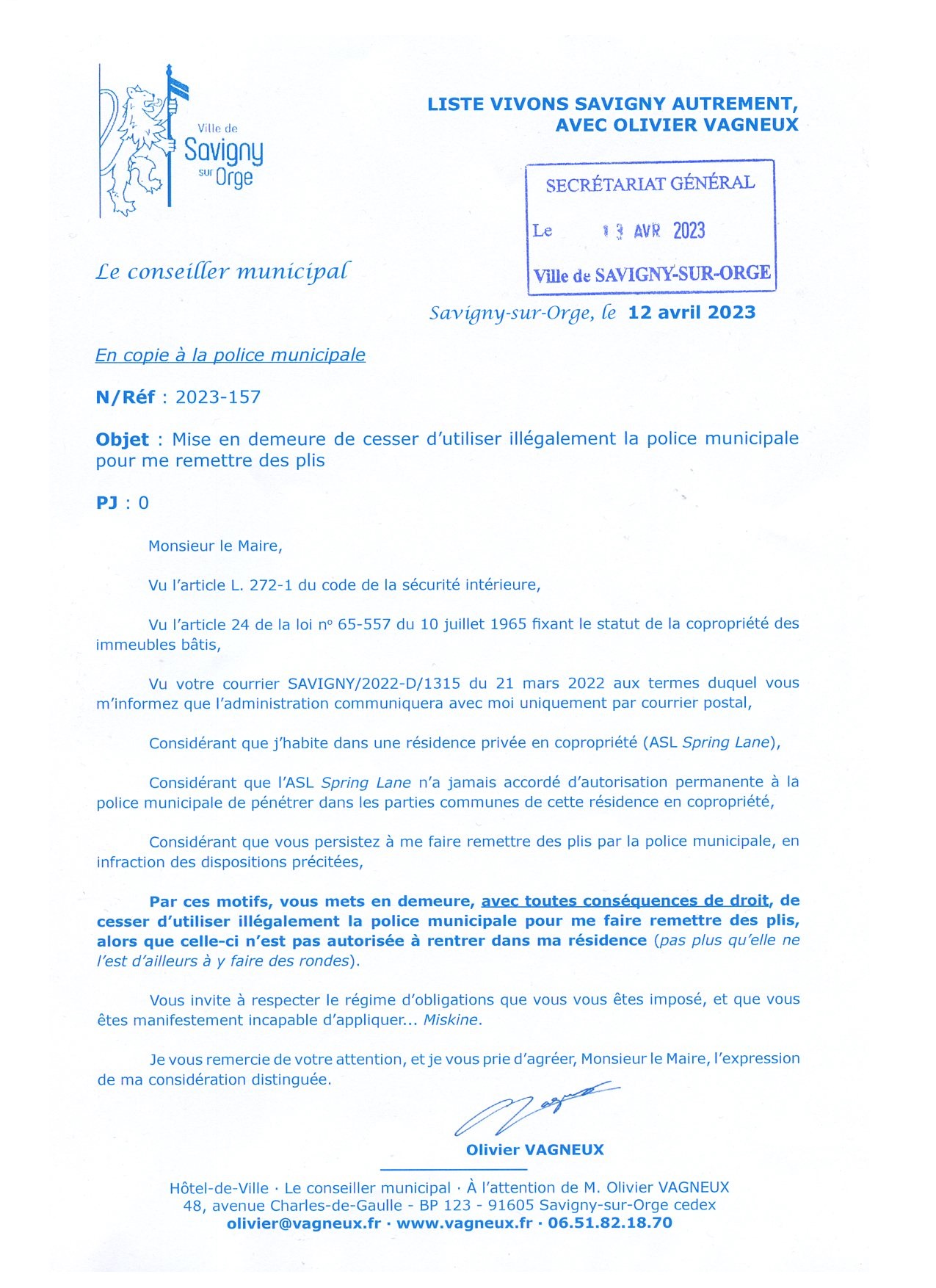 Je ne vois honnêtement pas ce qu’il y a de compliqué à comprendre dans : « la police municipale ne peut entrer dans une résidence privée que si elle y a été préalablement été autorisée par le conseil syndical. » Bah, à Savigny, si, c’est vraiment trop compliqué à comprendre… ¯\_(ツ)_/¯