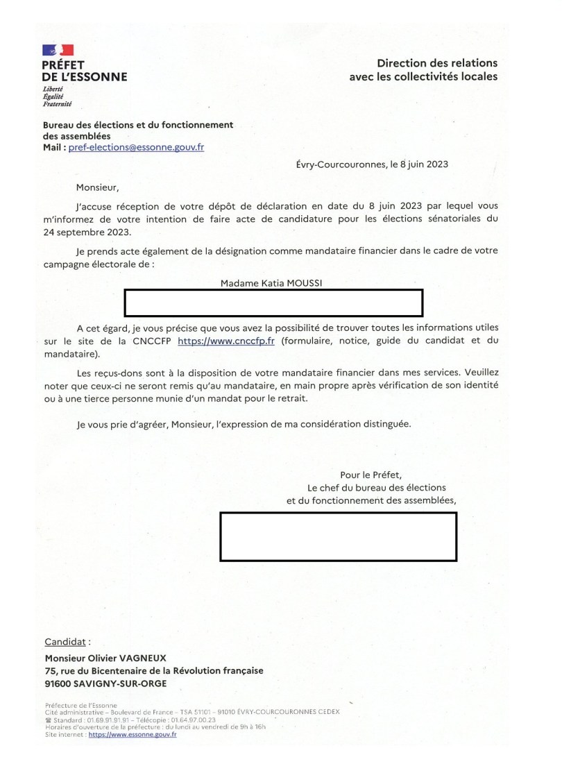 La première étape est désormais franchie avec cette déclaration de mandataire en préfecture, qui dévoile officiellement mon intention de candidater.