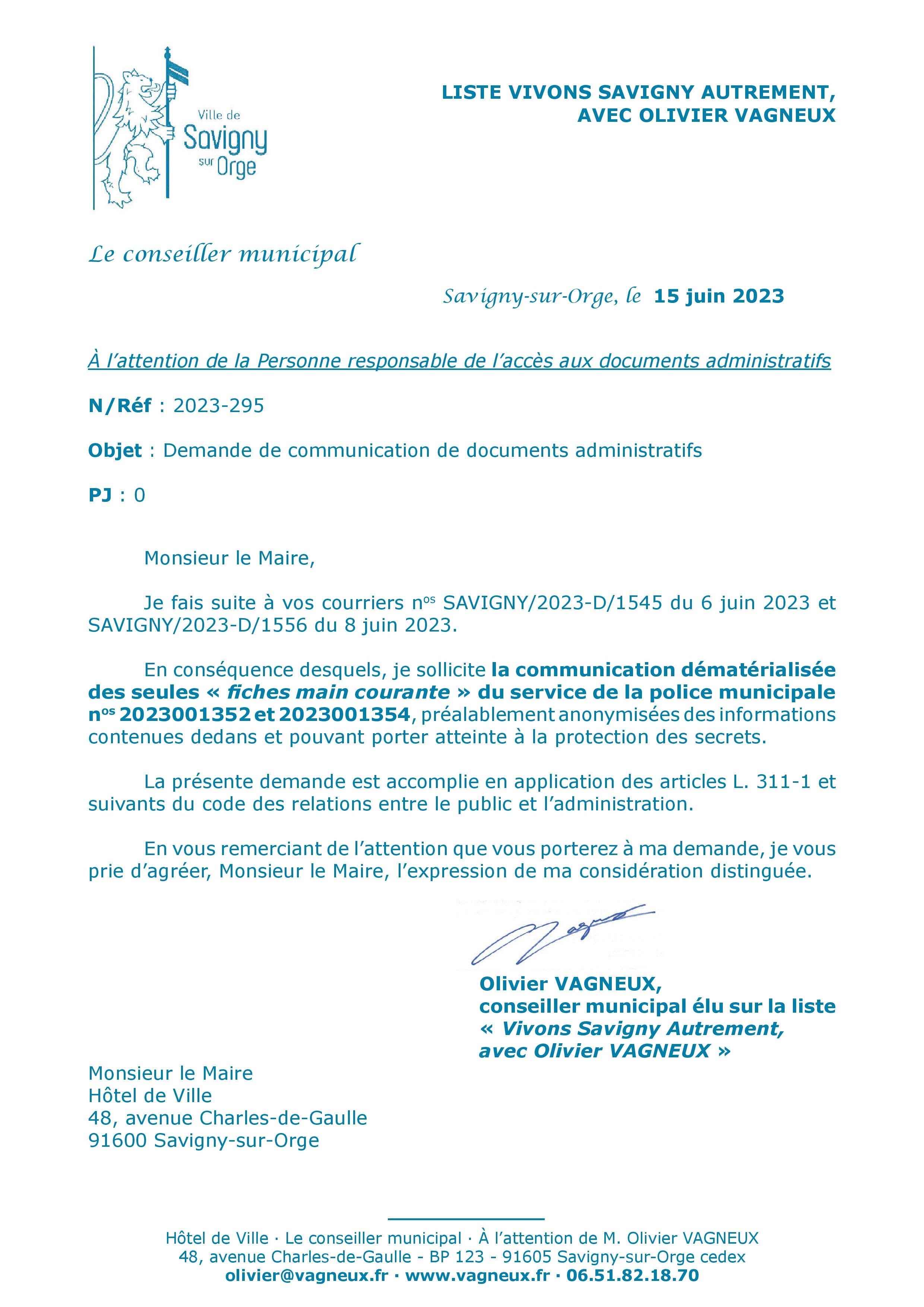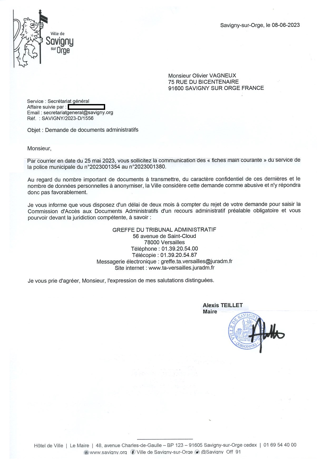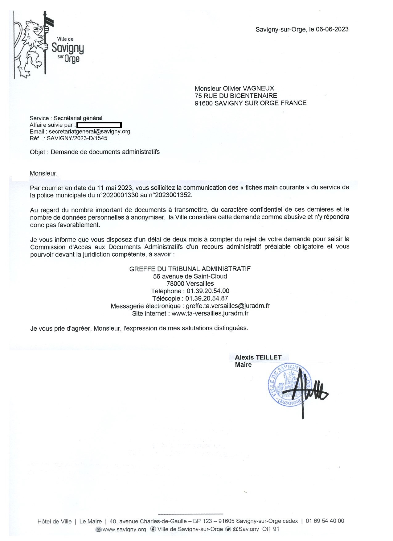 Du coup, puisque TEILLET me dit que le problème est la communication de 50 rapports, je lui ai réécrit pour ne lui en demander la communication que de deux.